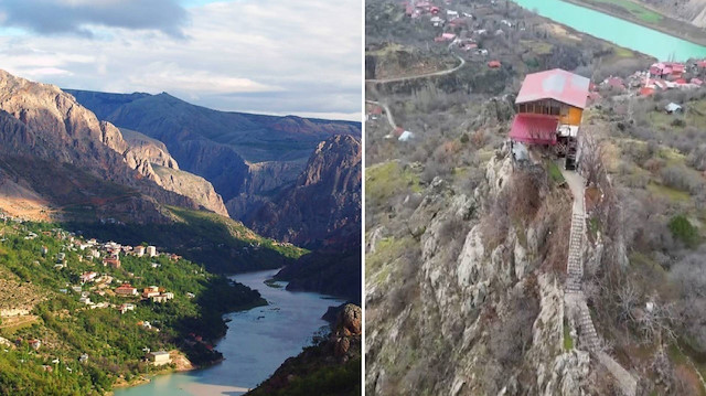 Türkiye'nin en etkileyici yerlerinden biri olan Erzincan'ın Kemaliye ilçesi büyüleyen manzarası, tarih kokan sokakları ve adrenalin dolu doğa sporlarıyla her yıl yaz aylarında nüfusunun 10 katı ziyaretçiye ev sahipliği yapıyor. İlçenin simgesi haline gelen ve 96 basamakla çıkılabilen kayalığın tepesindeki ev ise görenleri şaşırtıyor.