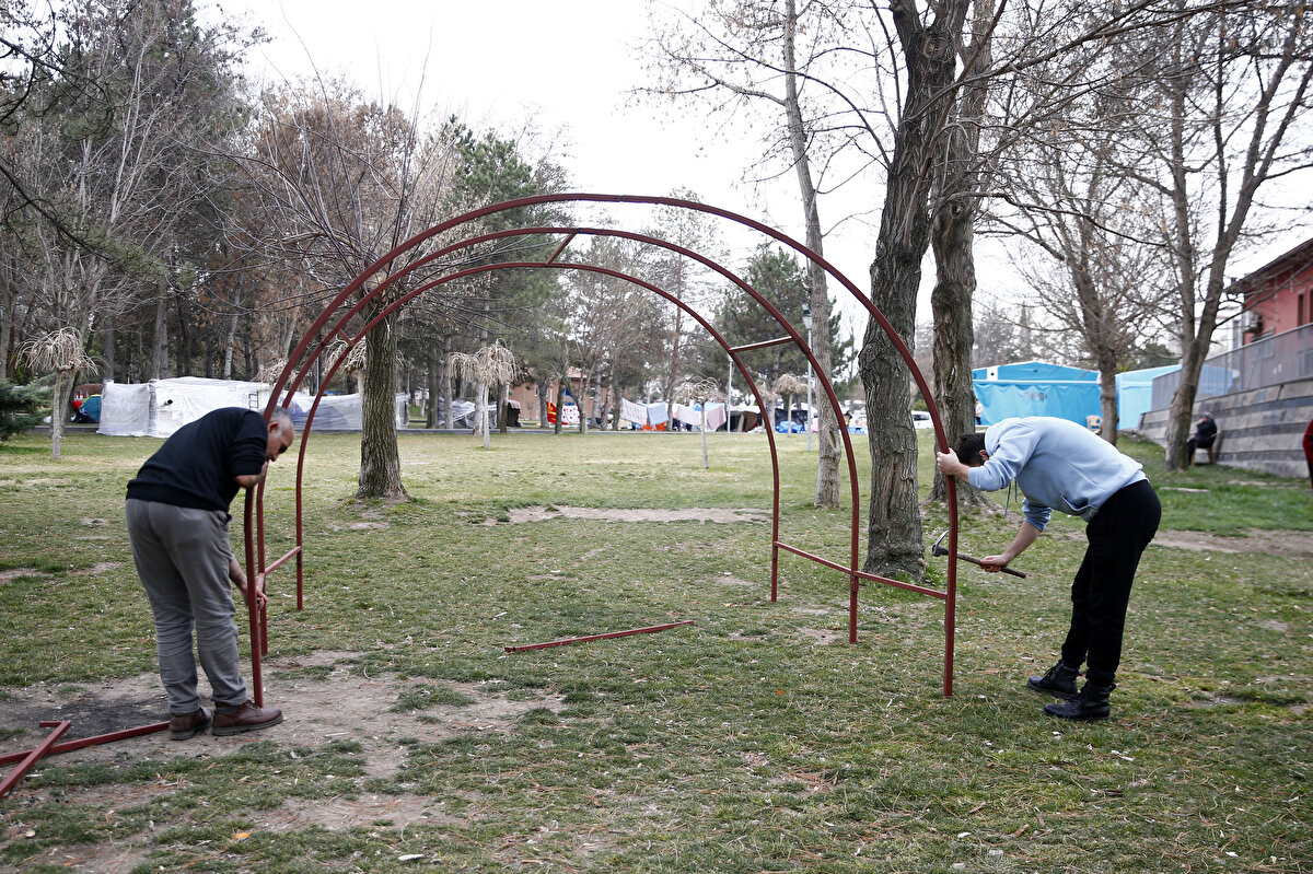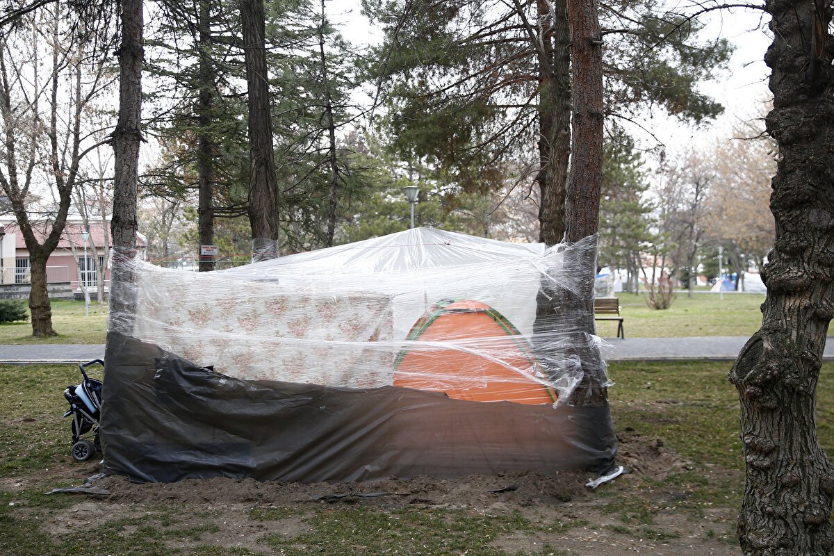 Evlerine girmekte zorlandıklarını vurgulayan Özdem, "Depremden sonra evimizde duramıyoruz. Kahramanmaraş'taki depremlerden sonra da artçılar devam etti. Bu da bizi tedirgin etti. Kayseri merkezli depremler de başlayınca çadırda kalmaya karar verdik. Evimizin duvarlarında çatlaklar mevcut ama ana taşıcılarda sorun olmadığı söylendi. Tedirgin olduğumuz için parkta kalmak istiyoruz." diye konuştu.