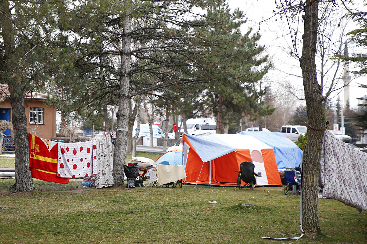 Kayseri'de depremlerden tedirgin olanlar parklara çadır kurdu