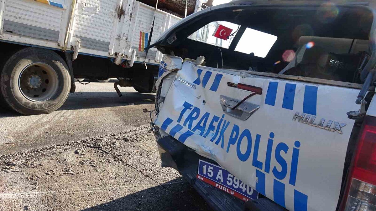 Arızanın giderilmesi için şoför tamirci çağırırken, bölge trafik ekipleri de kamyonun arkasında güvenlik önlemleri almak için durdu. O sırada aynı istikamette seyir halinde olan Süleyman O. idaresindeki halk otobüsü önce polis aracına, ardından kamyona çarptı.