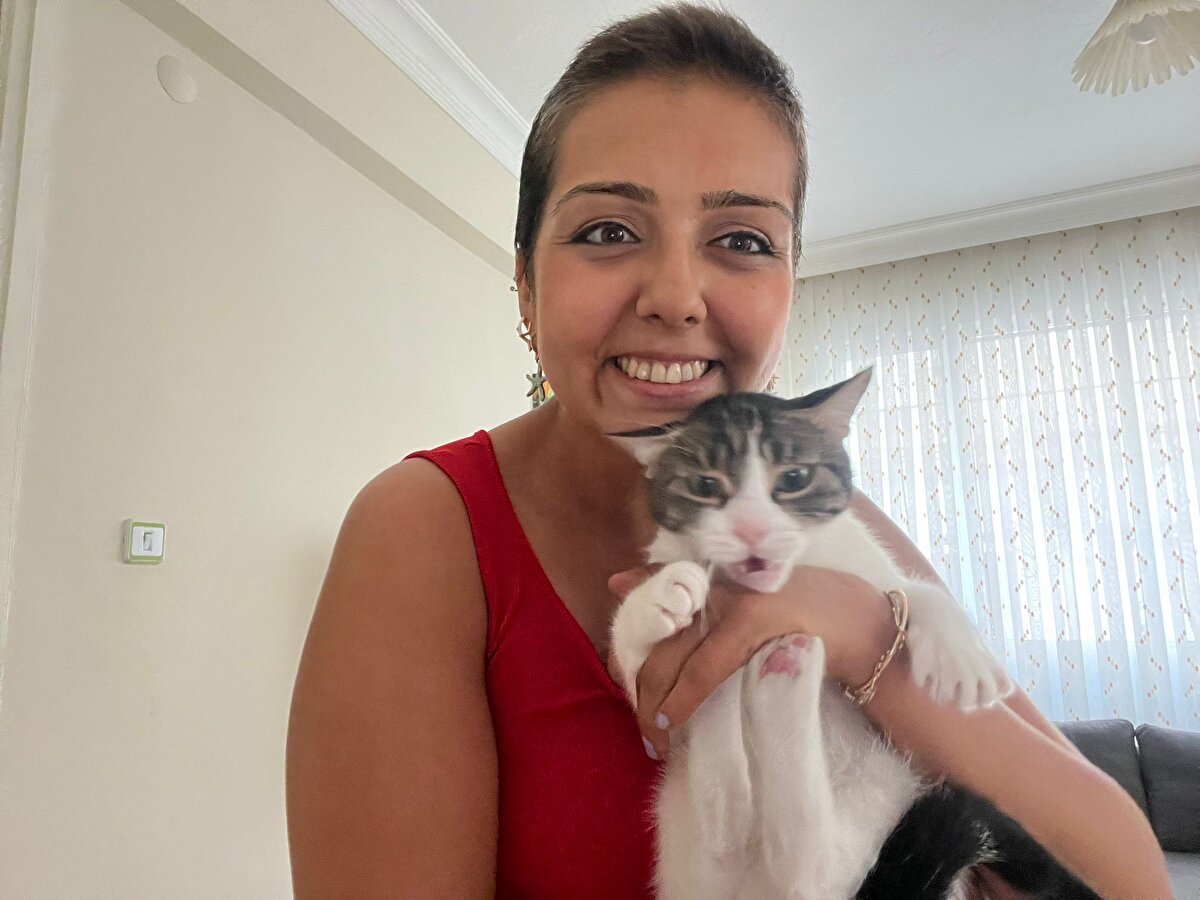 Seden Baş, 6 yıl önce sokaktaki bir manav tezgahının altında bulduğu yavru kediyi sahiplendi ve ona sıcak bir yuva sundu.