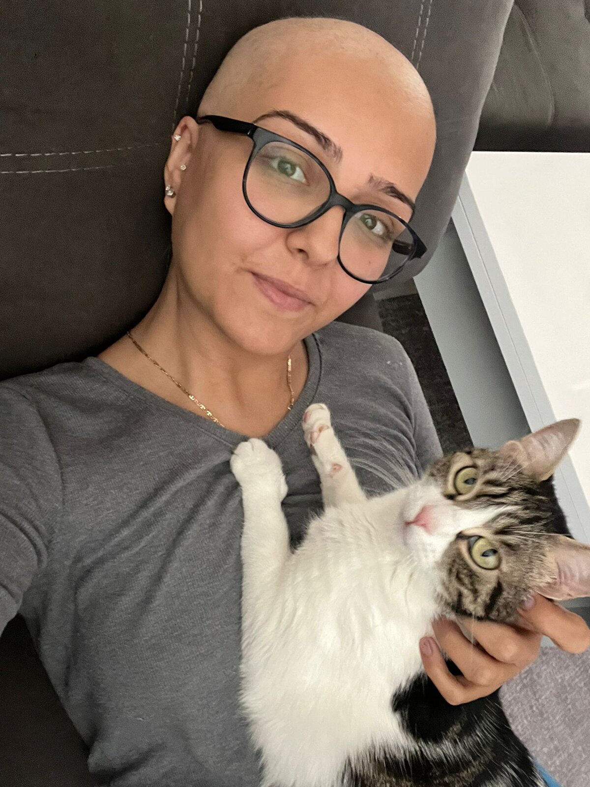 "Şans" ismini verdiği kedisinin, 1 yıl önce sürekli sağ memesinin üstüne yatması veya atlaması nedeniyle oluştuğunu düşündüğü şişlik nedeniyle hastaneye başvuran Baş, yapılan tetkikler sonrası meme kanseri olduğunu öğrendi.