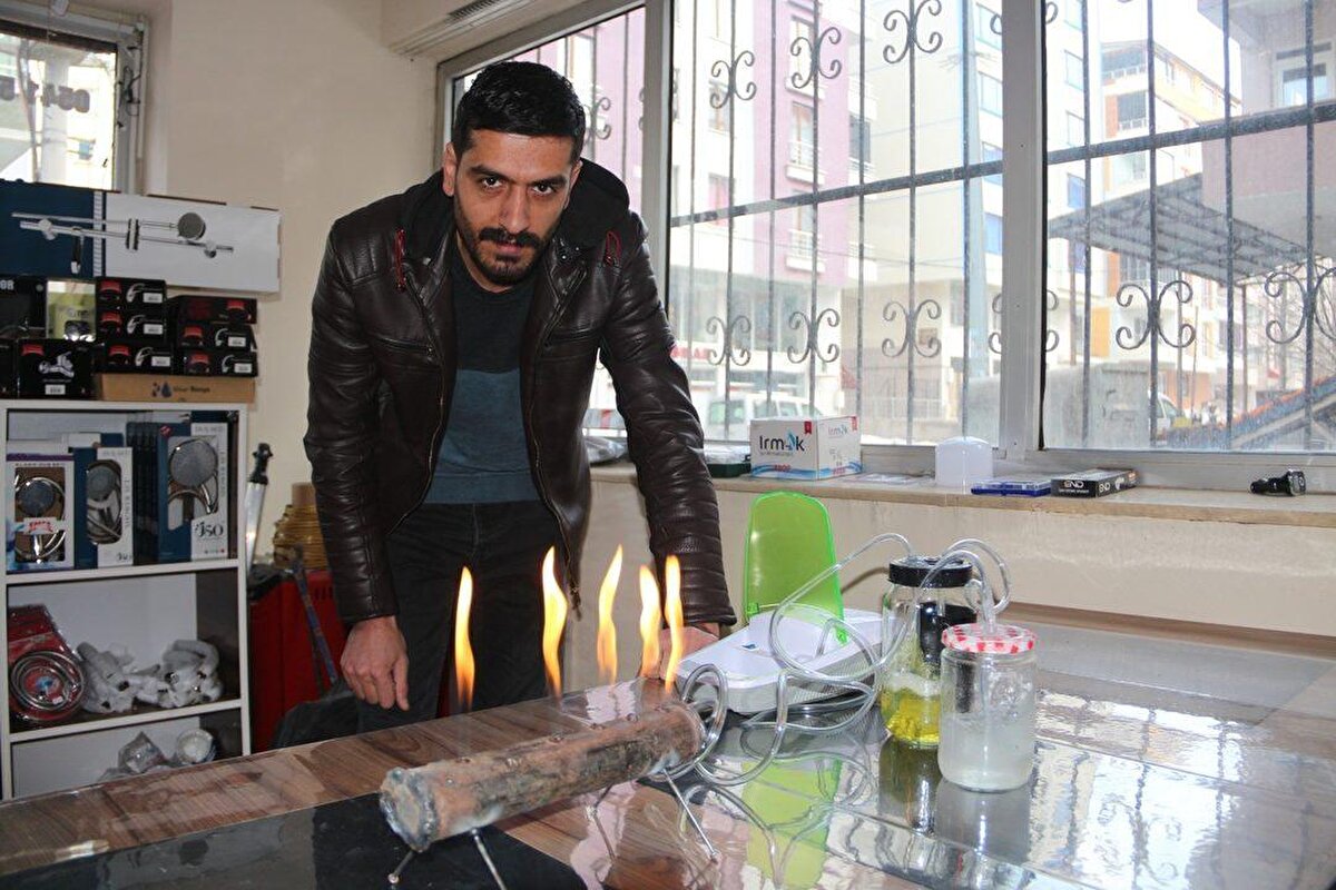 Tatvan’da 15 yıldır elektrik işiyle uğraşan Barış Karaca, artan gaz fiyatları ve sert geçen kış koşullarında ısınmak için çareyi tasarruflu üretim yapmakta buldu. Sosyal medyada gördüğü videodan esinlenerek araştırma yapan Karaca, kendi imkânlarıyla kurduğu sistemle gaz üretmeyi başardı. Kendi tasarladığı düzenekle bir litrelik benzin ile bir evin aylık tüp ihtiyacını giderdiğini belirten Karaca, şimdi ise ürettiği gazı yakmanın mutluluğunu yaşıyor.