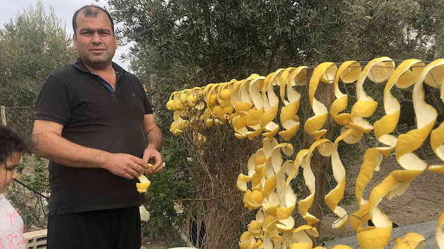 Limonu dalında kalan Ahmet Yiğenoğlu limonun kabuklarını soymak için ailesiyle birlikte yoğun bir mesai harcadıklarını belirterek, "Doğudan gelenler 50 kuruşa limonları aldı. Kalanları da böyle kurutuyoruz. Soyup tek tek asıp kuruttuktan sonra tüccara veriyoruz.