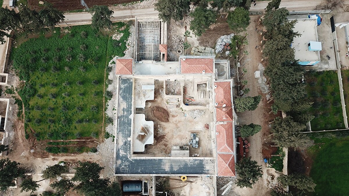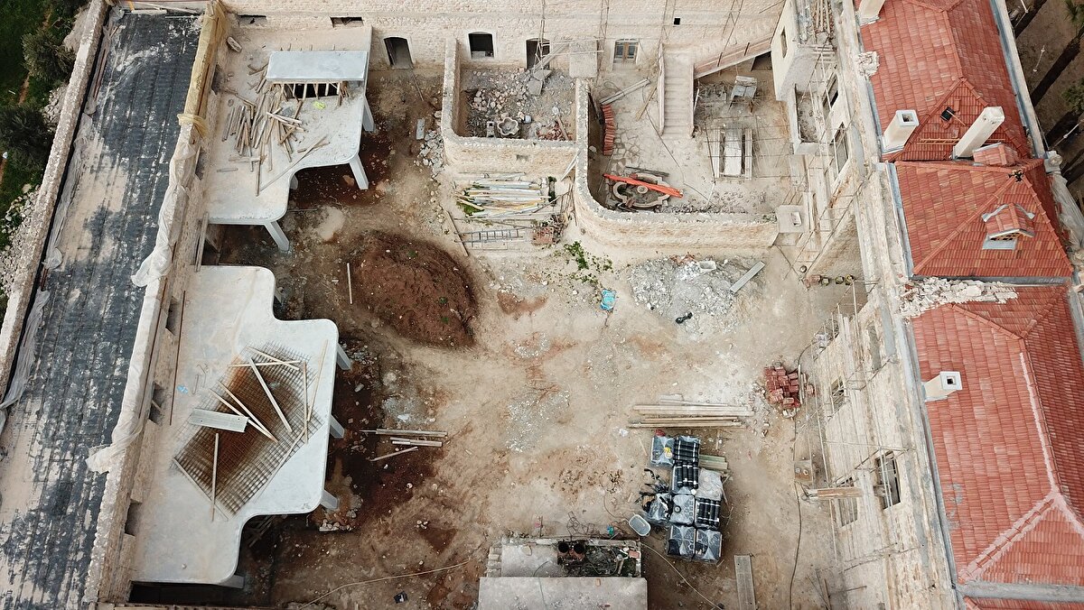 Deprem nedeniyle çalışmaların durduğu konağın duvarları yıkıldı, çatısı zarar gördü. Cam kenarlarında ve havuzun yanında ise dökülmeler olduğu görüldü.