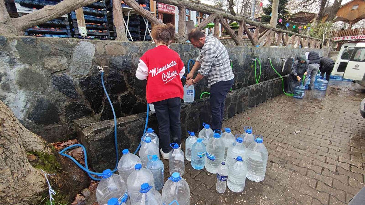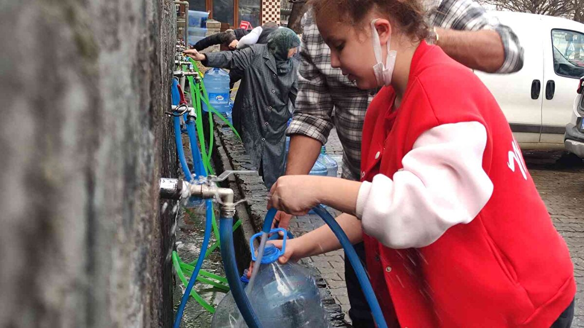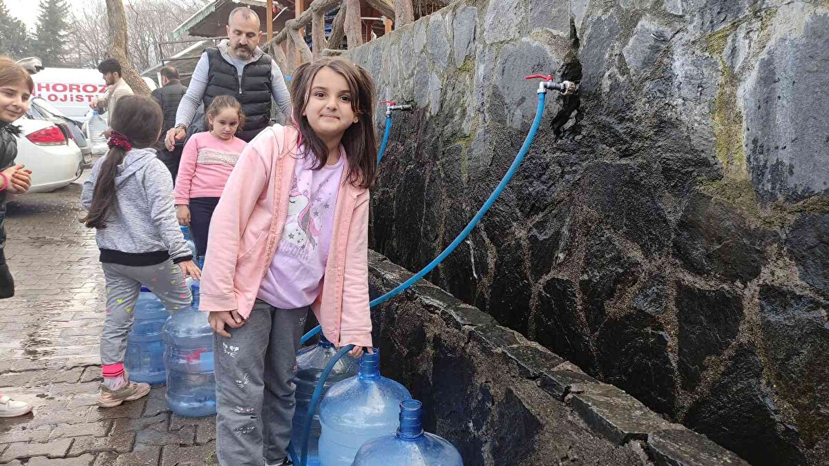 Vatandaşlar çeşmelerden bir aylık su ihtiyaçlarını doldurarak evlerinin yolunu tutuyor.