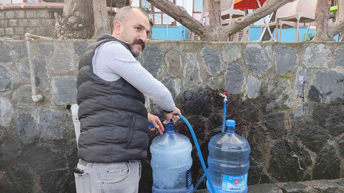Sürücüler ucuz sudan damacanalarına doldurmak için saatlerce kuyrukta bekliyor. Kuyrukta beklemeyip kaynak yaparak sıra bekleyenlerin önüne geçen bir vatandaş ise itiraf edip sırada bekleyenlerden helallik istedi.