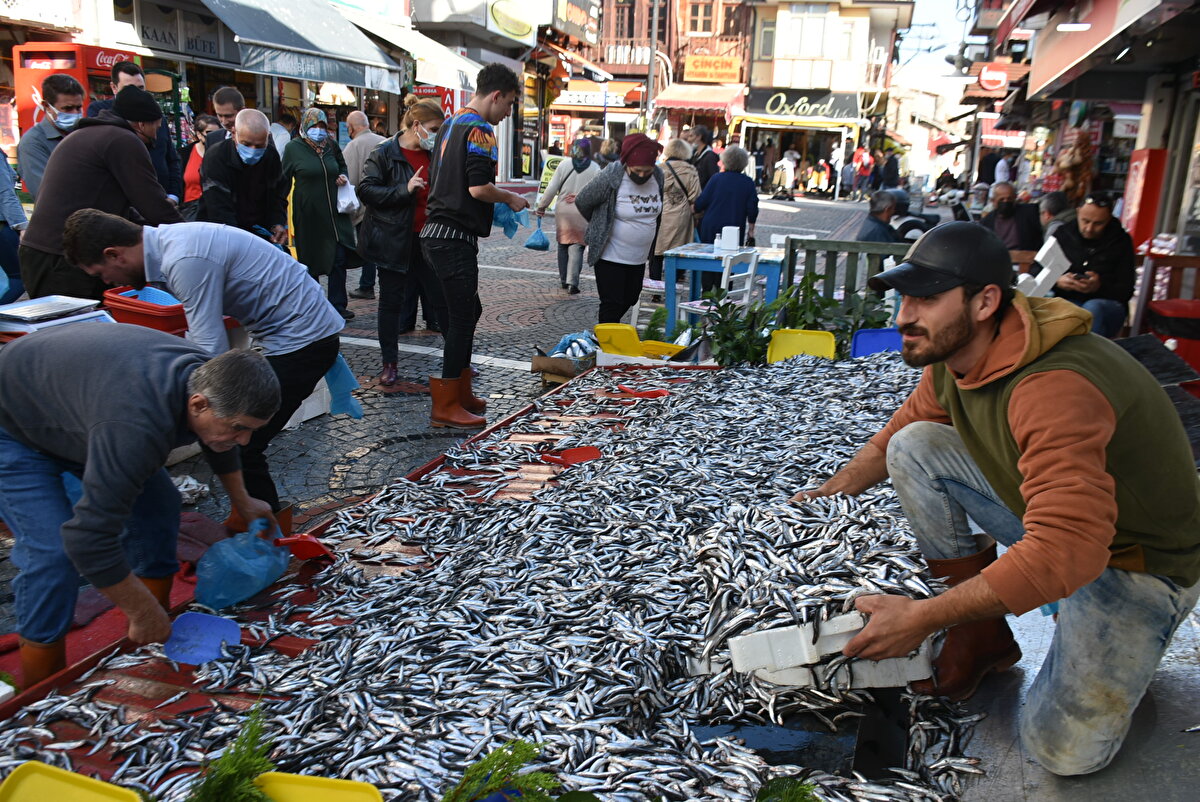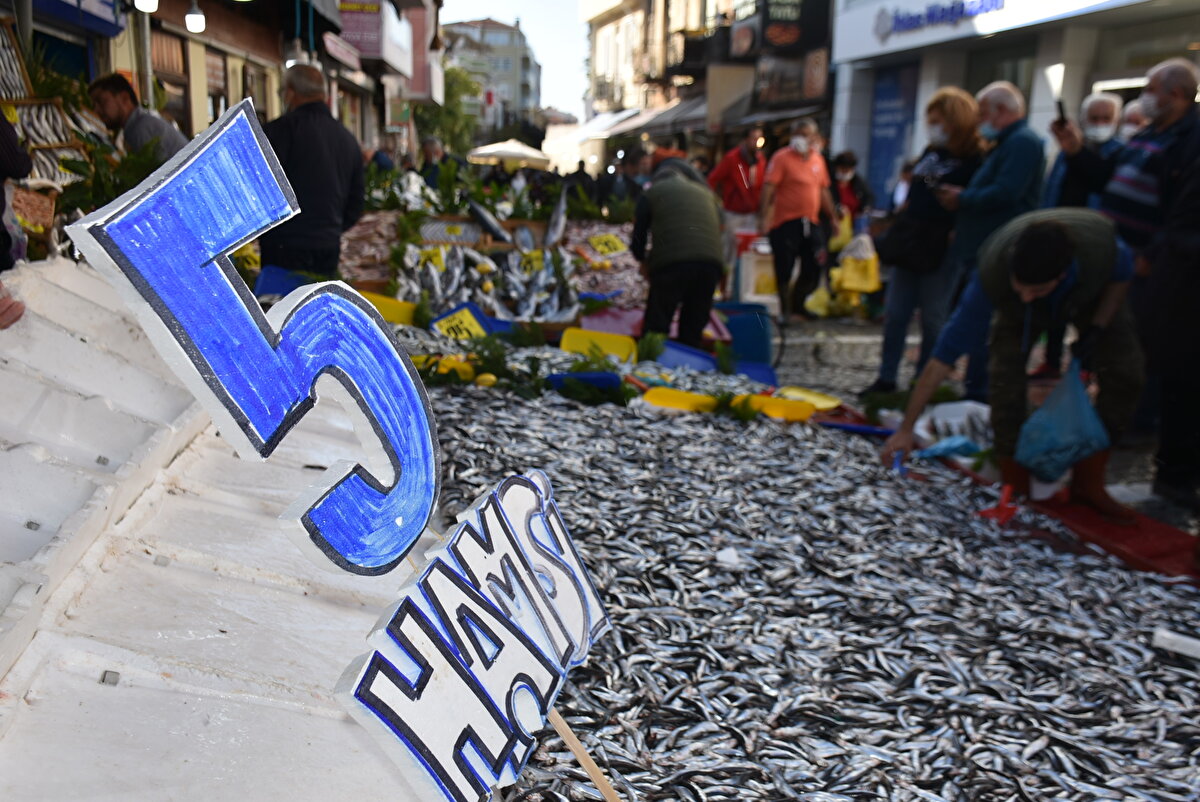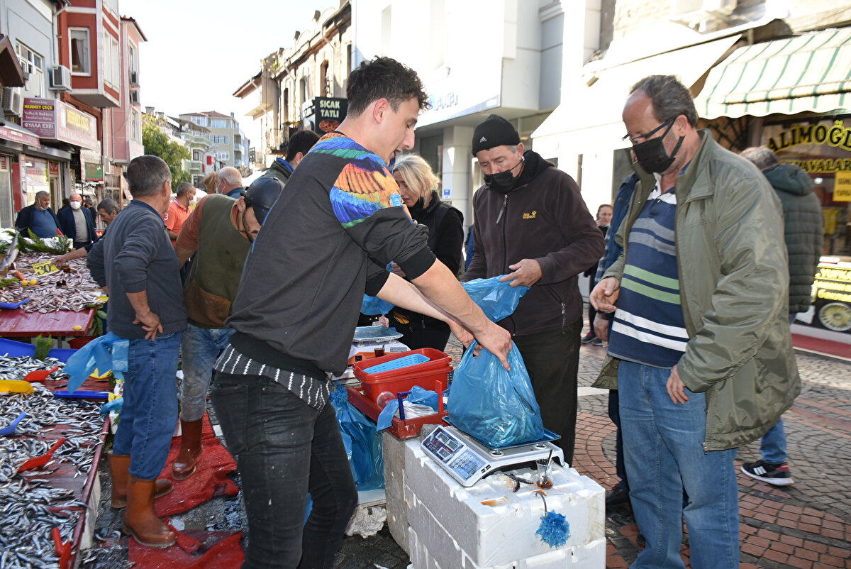 Edirne'de geçen haftalarda kilosu 40 liradan satılan hamsi, bugün kilosu 5 liraya düştü. Vatandaşlar, fiyatın ucuzlamasıyla kasalarla hamsi aldı.