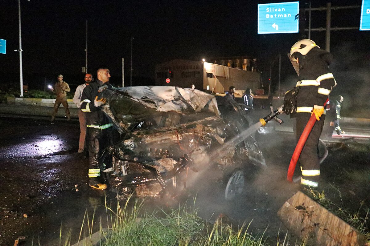 Diyarbakır'da, kırmızı ışık ihlali yapan taksiye çarpan otomobil alev topuna döndü. Taksiye de sıçrayan yangında ikisi vücudunda yanıklar oluşan 8 yaralı hastaneye kaldırılırken, kaza anı ise kameraya yansıdı.