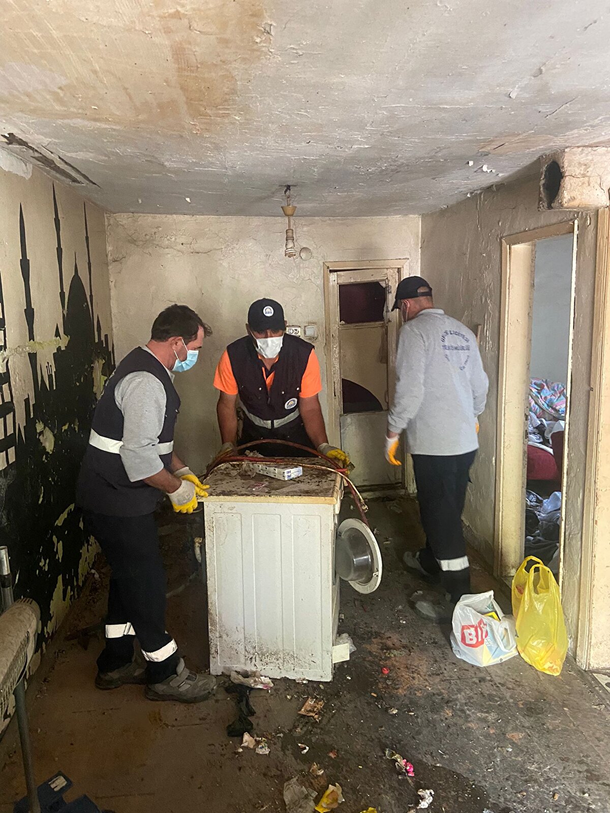 Kocaeli'nin Gebze ilçesinde çevre sakinlerinin kötü koku nedeniyle şikayet ettiği evden bir kamyon dolusu çöp çıkarıldı.