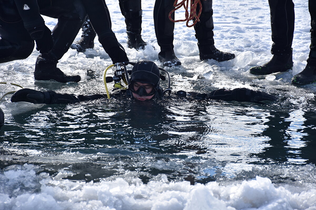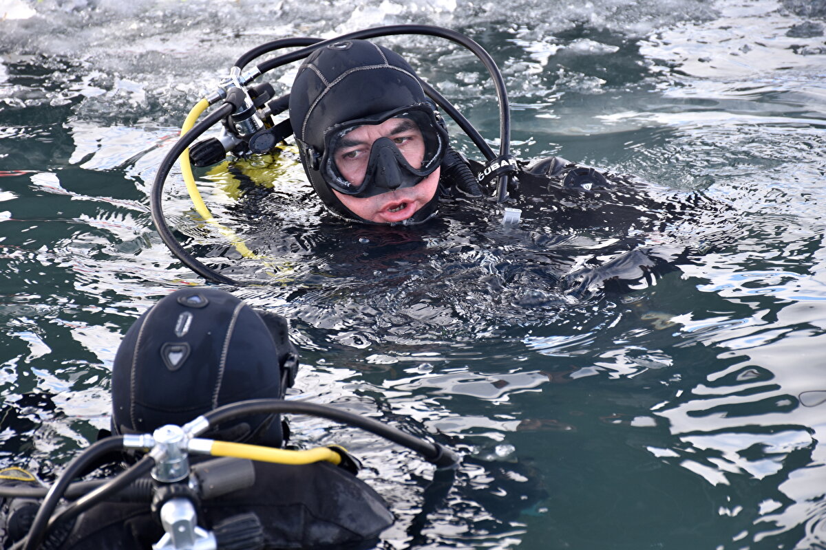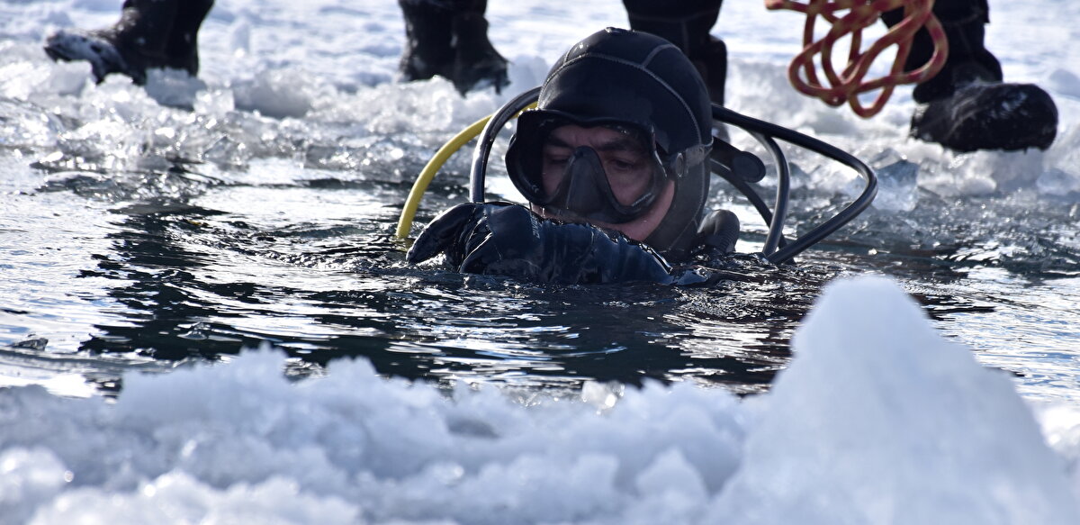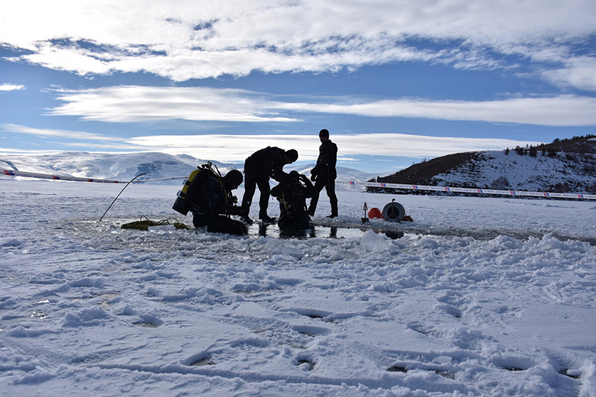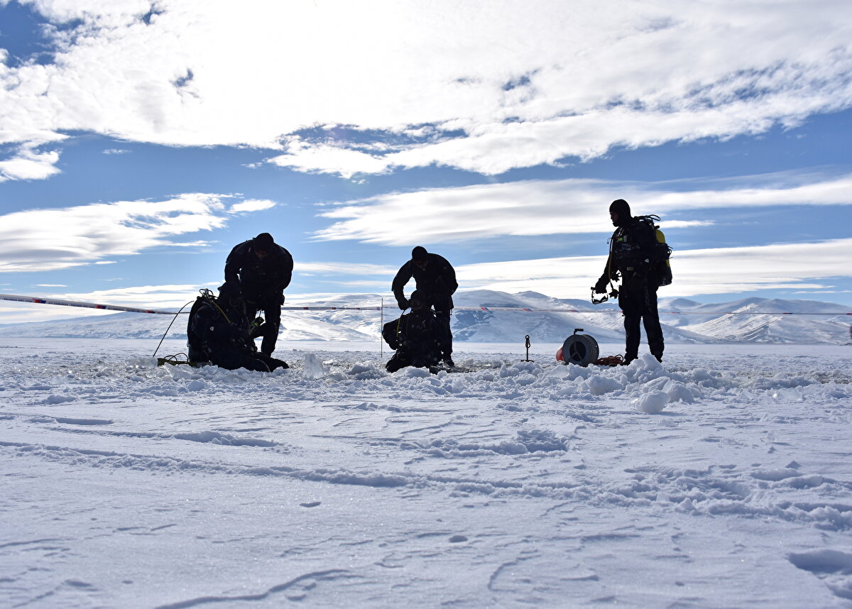 Yüksek irtifa ve buzlu suya dalış eğitimleri kapsamında Ardahan ile Kars illeri arasındaki Çıldır Gölü'nde kampa giren timler, hava sıcaklığının sıfırın altında 9 dereceye düştüğü 1950 metre rakımlı gölde yaklaşık 10 metre suya daldı.