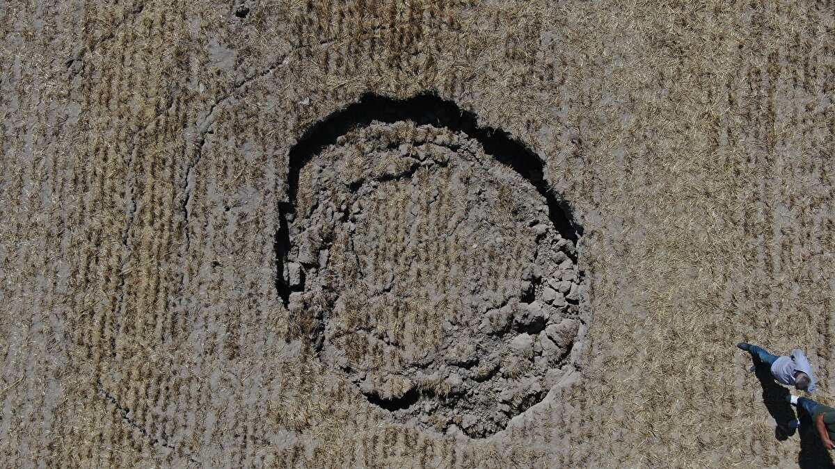 Ankara'nın Polatlı ilçesinde bir tarlada 7-8 metre çapında obruk ortaya çıktı. Ankara'nın Polatlı ilçesine bağlı Hacıosmanoğlu Mahallesinde bulunan buğday tarlasında, henüz sebebi belirlenemeyen bir obruk meydana geldi. Obruğun 2 gün önce oluştuğunu ve her geçen gün genişlemeye devam ettiğini söyleyen tarla sahibi Seydi Karakaya ve yöre halkı yetkililerden yardım bekliyor.