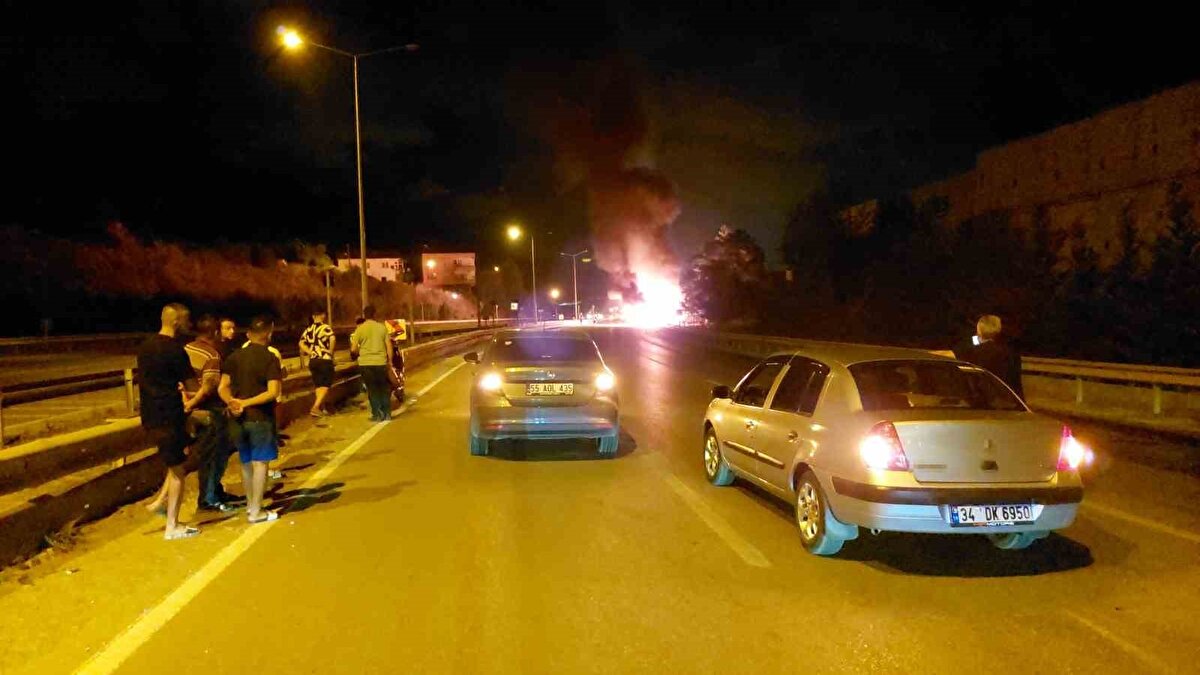 Samsun’un Atakum ilçesi Samsun Ankara kara yolu Sarıışık mevkisinde tiner yüklü bir tırda seyir halindeyken yangın çıktı.