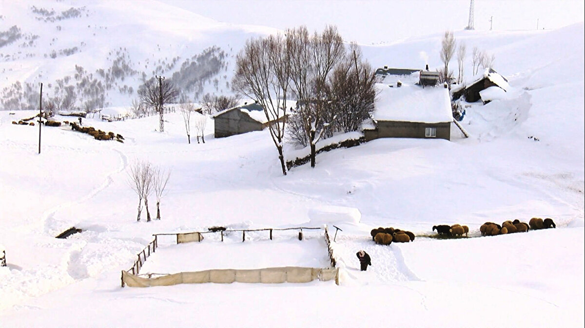 Evlerin, araçların ve traktörlerin kar altında kaldığı köyde, kapı önlerine asılan çamaşırlar da soğuk havanın etkisiyle donuyor. Geçimlerini besicilikle sağlayan vatandaşlar ise günde iki defa hayvanlarını kar üzerinde güçlükle besliyor.