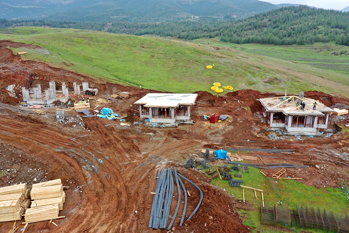 Çadır ve konteynerlerin yanı sıra prefabrik evlerde de depremzedelerin ağırlanmaya başlandığı ilçe merkezinde bir yandan enkaz kaldırılırken bir yandan da kalıcı konutlar için çalışmalar yürütülüyor.