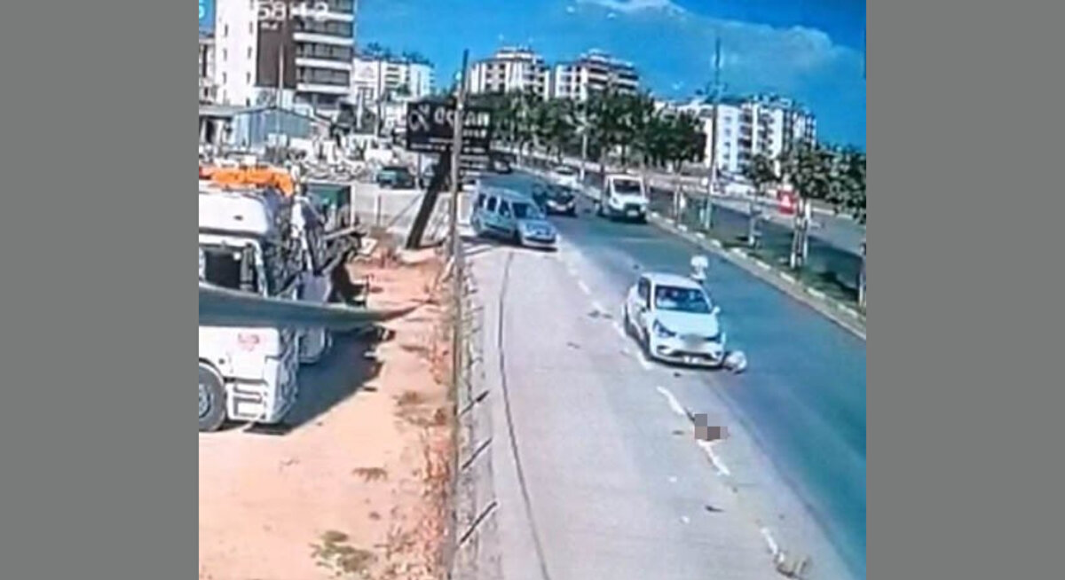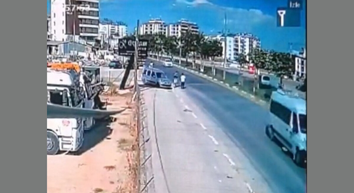 Antalya'nın Serik ilçesinde, yoldan karşıya geçmeye çalışan bir baba ve kucağındaki 12 yaşındaki oğlu, bir otomobilin çarpması sonucu yaralandı. Kazada 1 kişi ağır olmak üzere 2 kişi hastaneye kaldırıldı. Olay anı güvenlik kameraları tarafından kaydedildi.