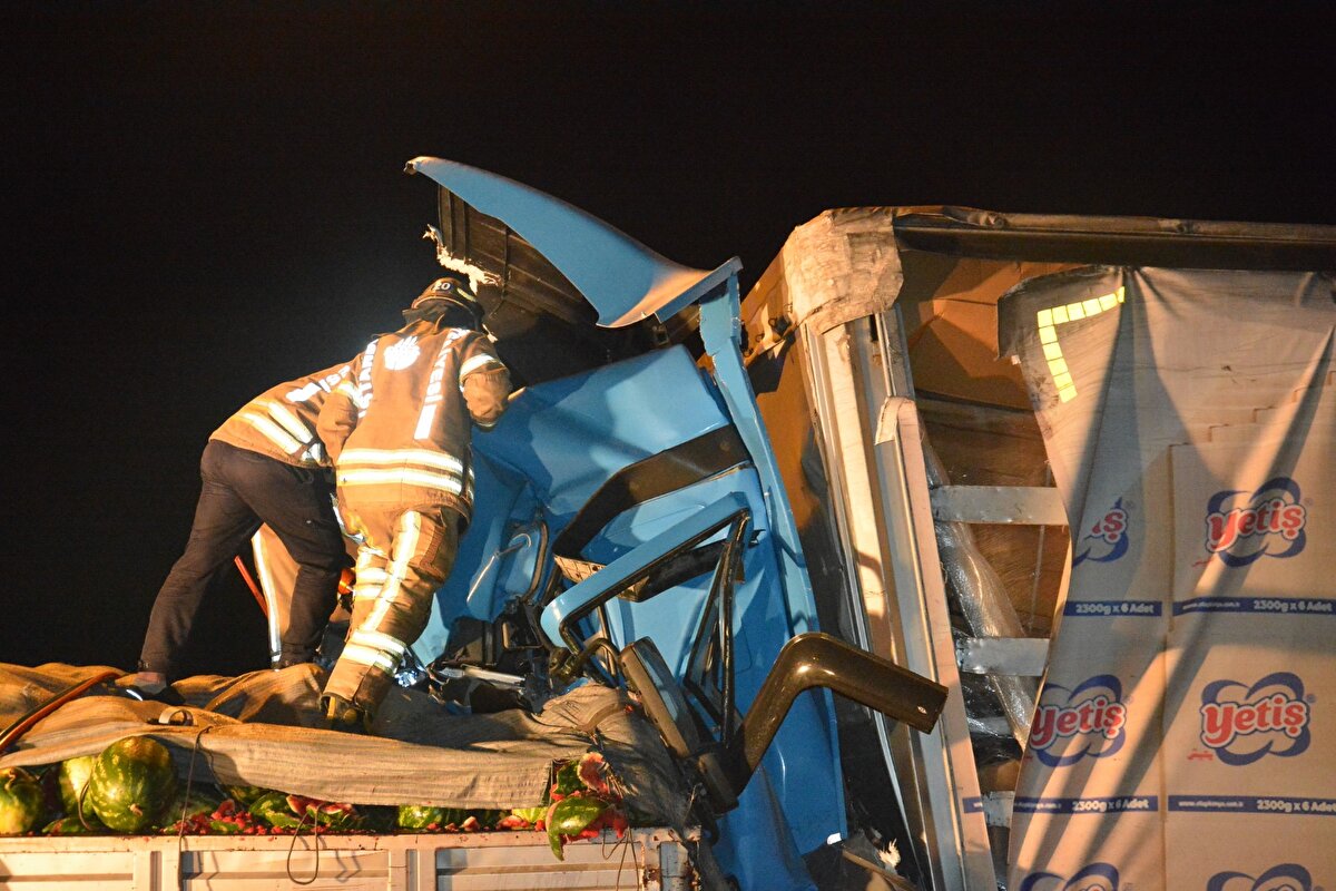 Çarpmanın etkisiyle 42 AKL 134 plakalı TIR'ın sürücüsü Cihat Borçalı, şoför mahallinde sıkıştı. Karpuz yüklü TIR'ın sürücüsü Hikmet Aktaş ve diğer sürücü ise kazadan yara almadan kurtuldu. Aktaş'ın kullandığı TIR'da yüklü olan karpuzlar ise yola dağıldı. İhbar üzerine olay yerine jandarma, itfaiye ve sağlık ekipleri sevk edildi.
