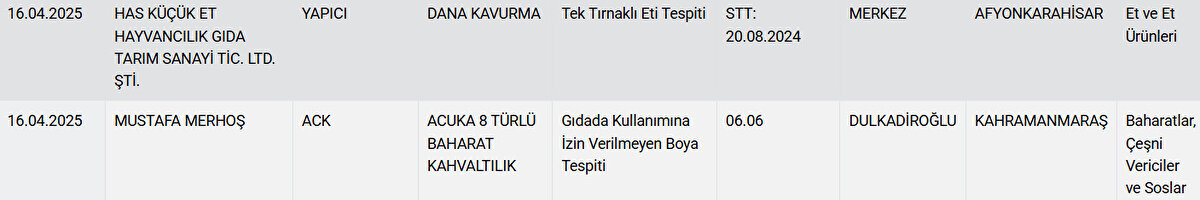 Tarım ve Orman Bakanlığı tarafından yapılan denetimlerde, lahmacun harcında tek tırnaklı eti tespit edildi. Bakanlık, bu firmaların isimlerini internet sitesinde yayımlayarak restoranın ismini ifşa etti...