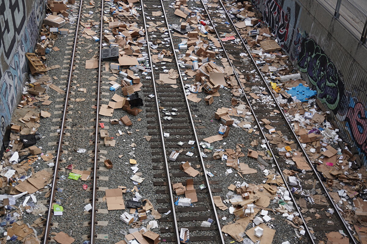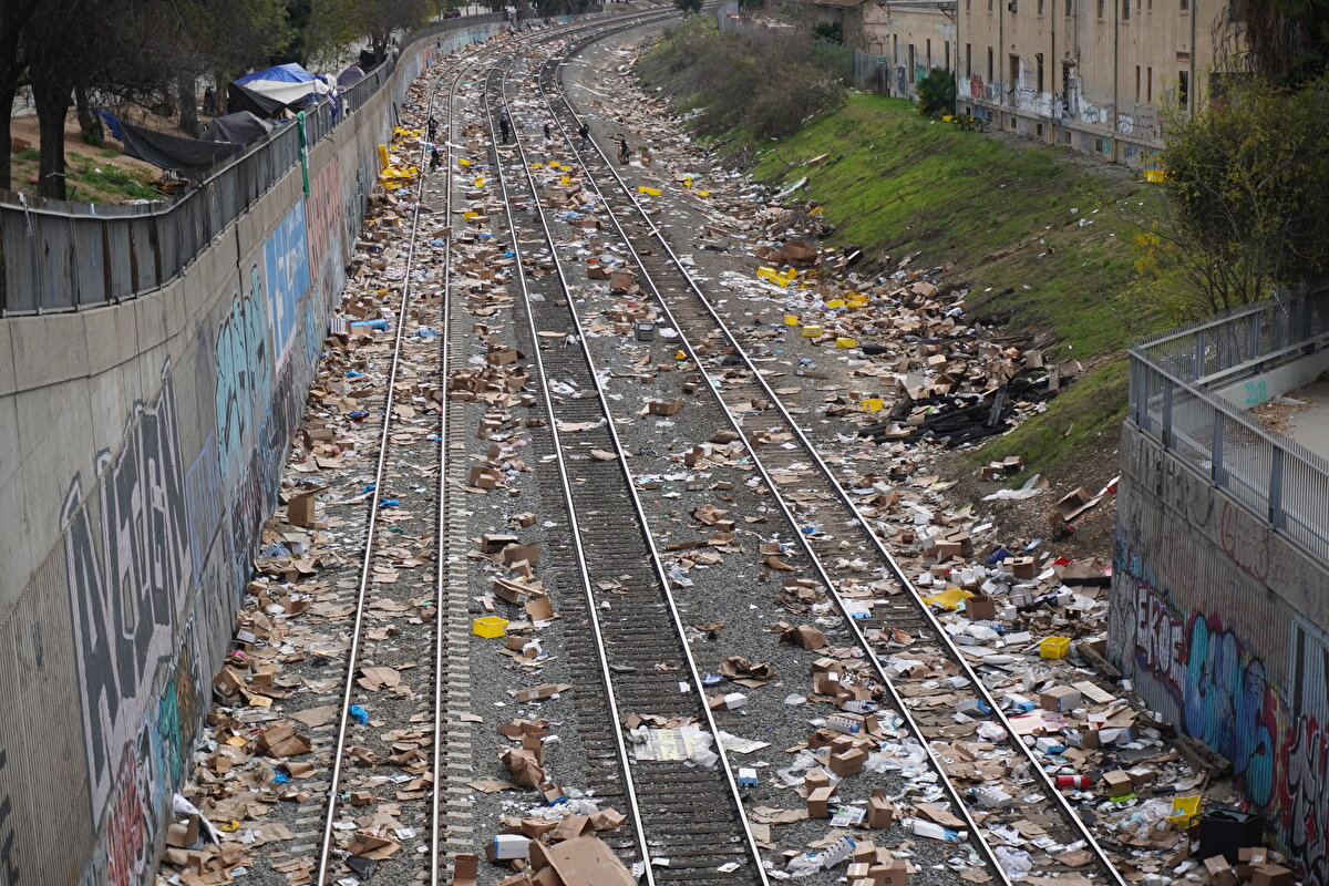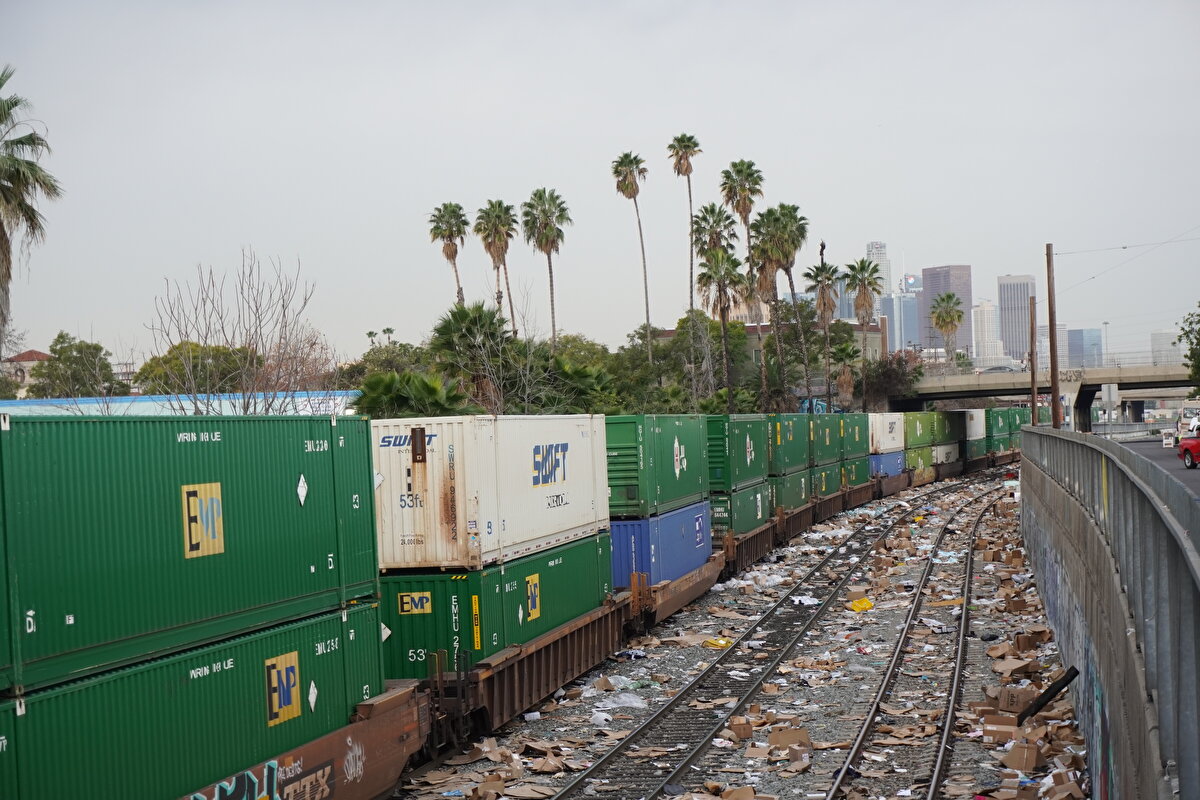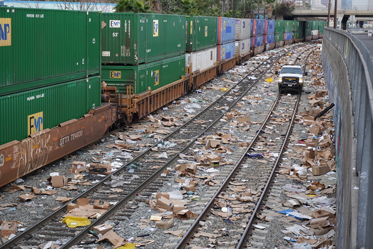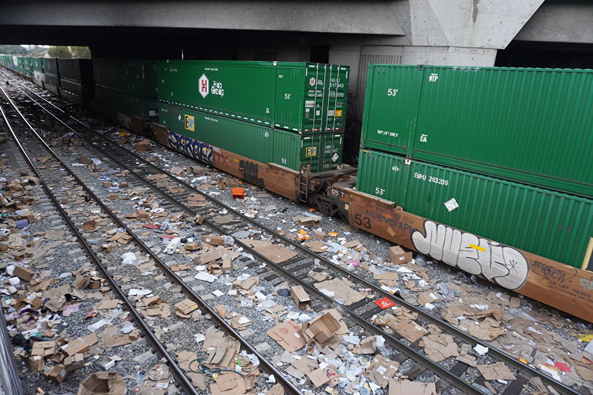 ABD'nin California eyaletine bağlı Los Angeles kentinde, hırsızların aylardır şehir merkezine girerken yavaşlayan hareket halindeki yük trenlerini yağmaladığı ve rayların kutularla kaplı olduğu ortaya çıktı.