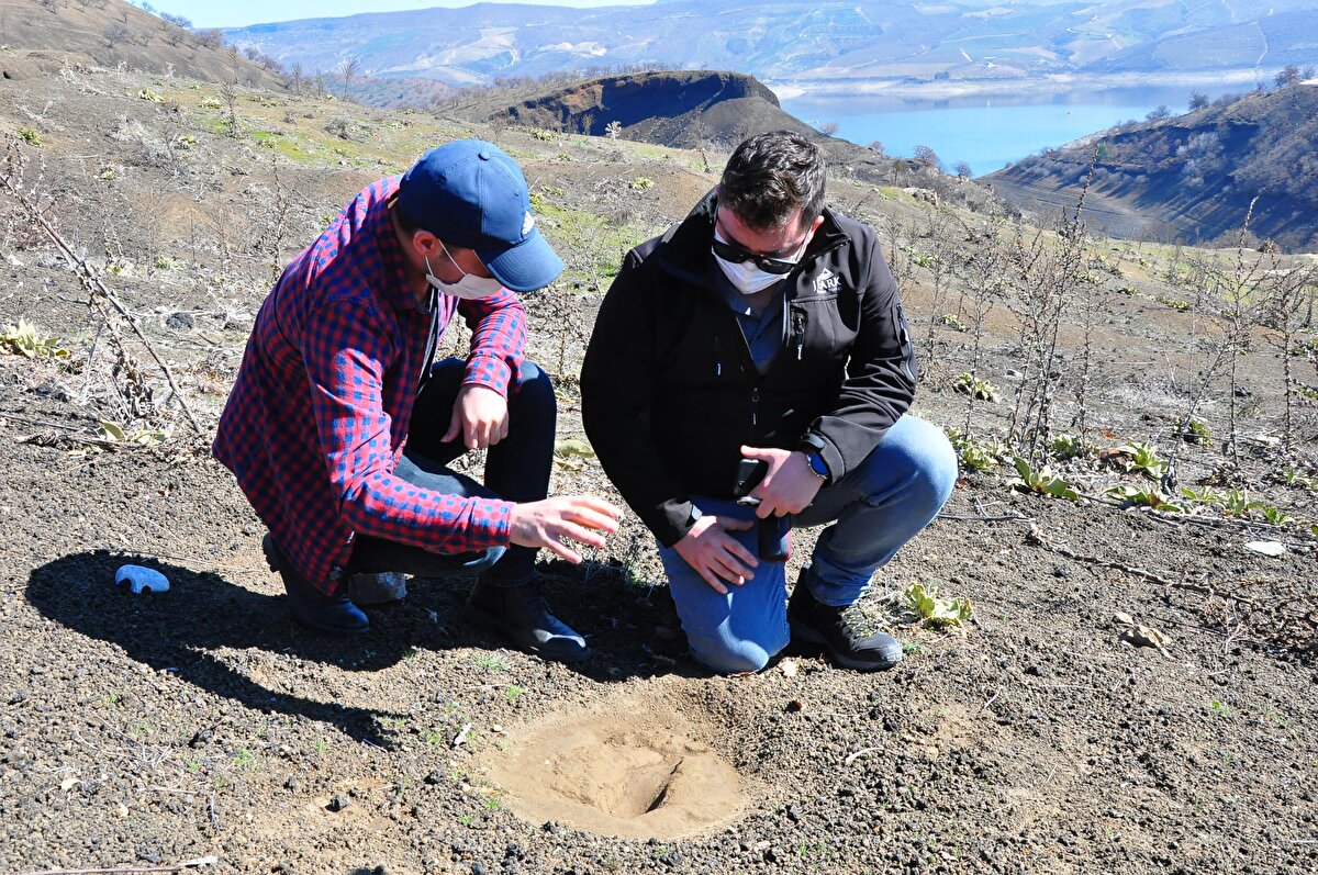 Hacettepe Üniversitesi, İstanbul Teknik Üniversitesi, Manisa Celal Bayar Üniversitesi, Almanya'nın Heidelberg Üniversitesi ve Avustralya'nın Curtin Üniversitesi'nden akademisyenler ile volkanologların oluşturduğu komisyon, Sindel Mahallesi yakınlarında bulunan ayak izleri ve külleri inceledi.