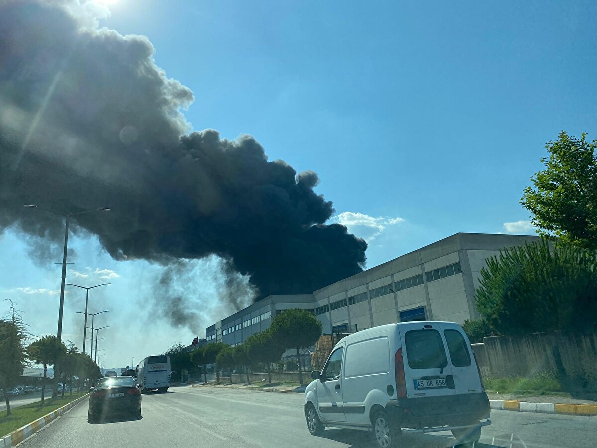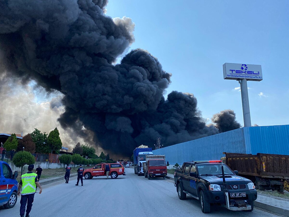 Manisa'da organize sanayi bölgesindeki bir geri dönüşüm tesisinde yangın çıktı. Bölgeye sevk edilen ekipler, alevlere havadan ve karadan müdahale ediyor.