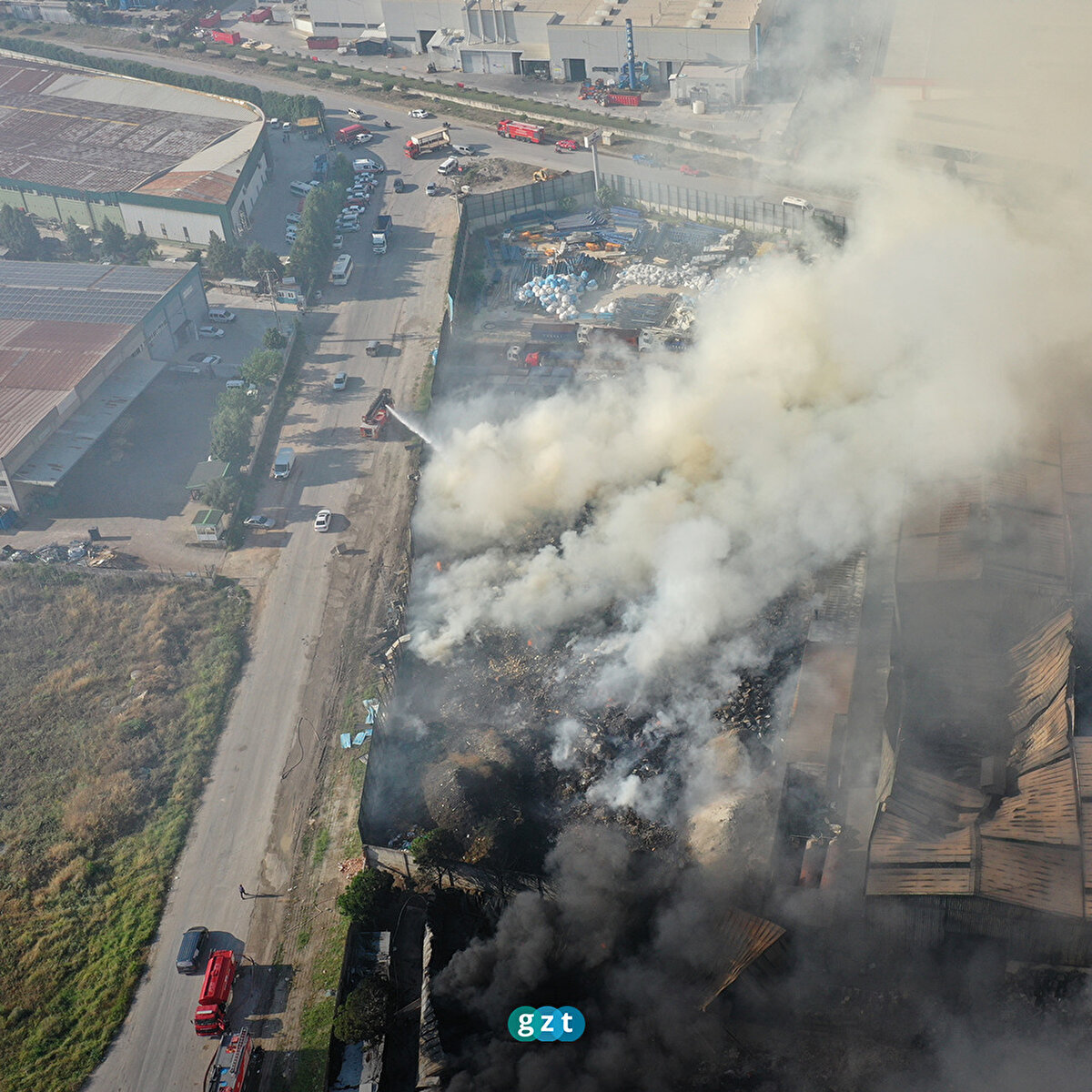 Manisa'da, Muradiye Organize Sanayi Bölgesi'ndeki bir fabrikada yaklaşık 16 saattir süren yangına itfaiye ekiplerince müdahale ediliyor.