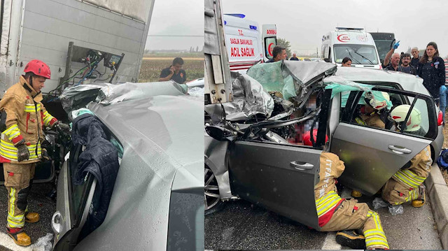 Kaza, saat 15.00 sıralarında Selimşahlar Mahallesi’nde İzmir-İstanbul karayolunda meydana geldi. Edinilen bilgiye göre, Y.G. yönetimindeki otomobil, sürücüsünün direksiyon hakimiyetini kaybetmesi sonucu karşı şeride geçerek Ö.Y. yönetimindeki tıra arkadan çarptı.