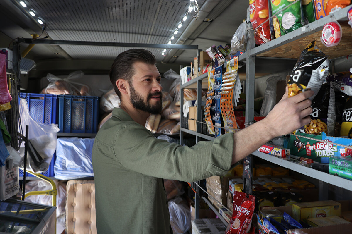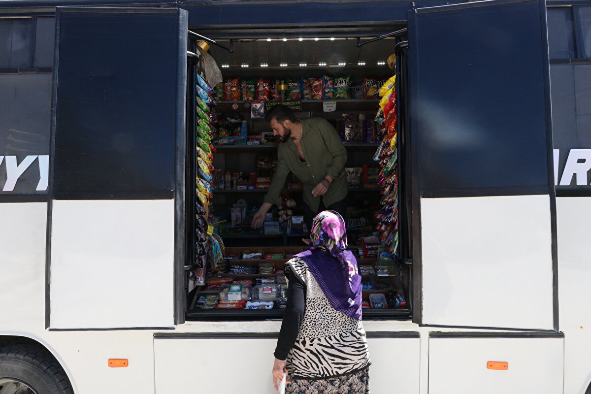Eskişehir'de yaşayan esnaf Semih Gör, içini ürünlerle doldurduğu otobüs ile marketi olmayan 40 köy ile mahalleye hizmet verirken günde 120 kilometre yol kat ediyor. Gör'ün gittiği köyde yaşayan 68 yaşındaki Rabia Özsoy, "Eve lazım ne varsa burada buluyoruz, en çok da ekmek alıyoruz. Marketimizi çok seviyoruz, o olmasa biz aç kalırız" dedi.