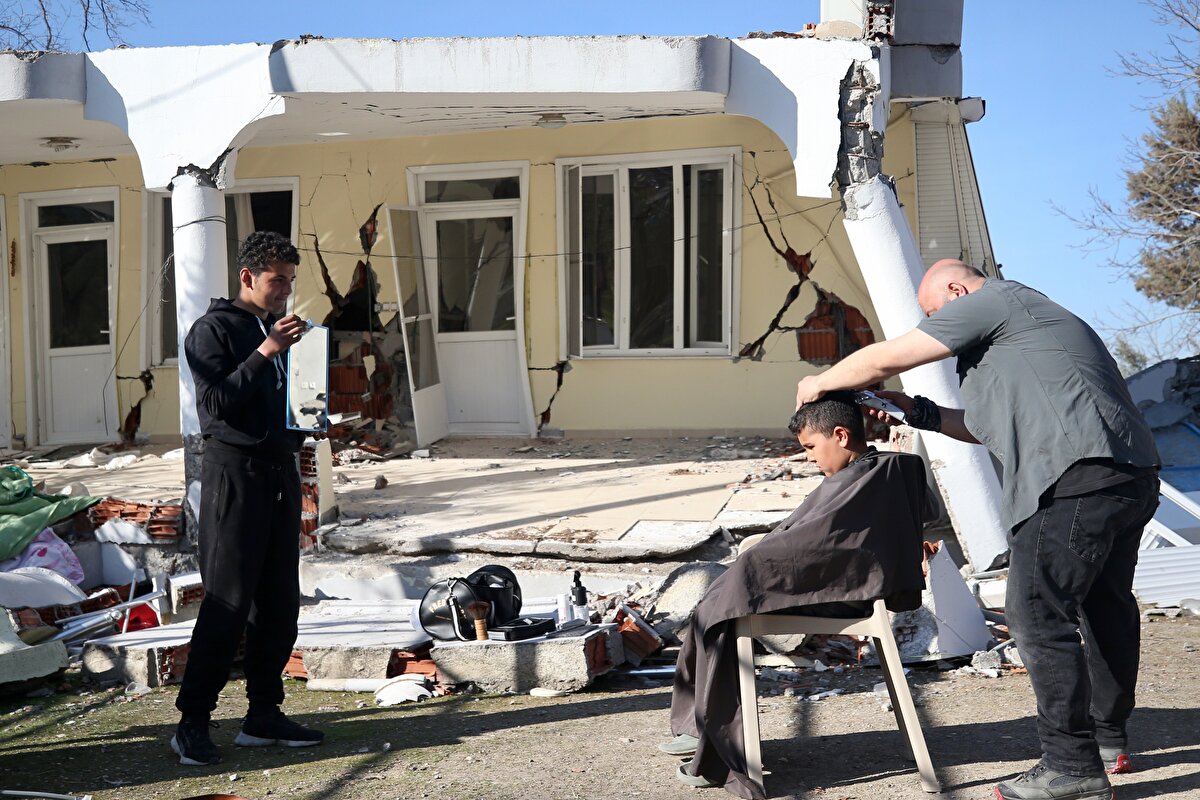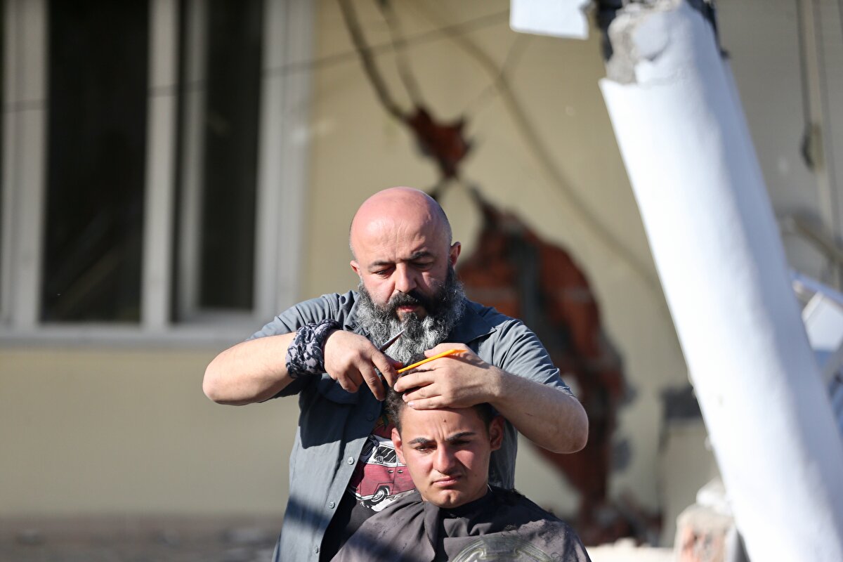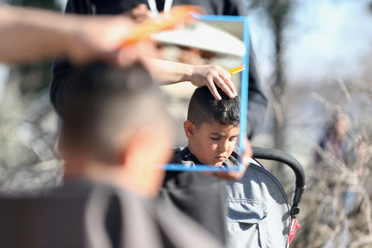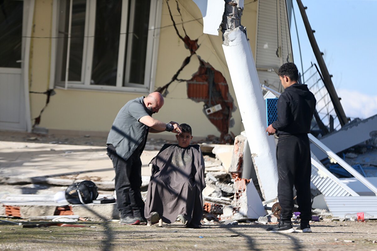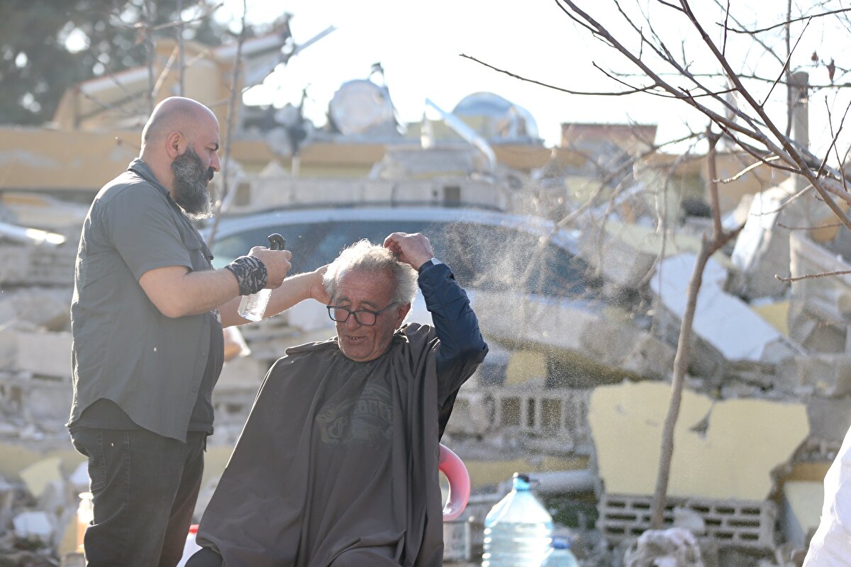 17 Ağustos 1999'da Marmara ve 12 Kasım 2022'de Düzce depremlerini yaşayan erkek kuaförü Serdar Gündüz, Kahramanmaraş merkezli depremlerin ardından kente geldi. Kent merkezine bağlı köyler ile Pazarcık ilçesine giden Gündüz, yanında getirdiği tıraş malzemeleriyle yaklaşık 20 gündür berbere gidemeyen çocukları tıraş ediyor.