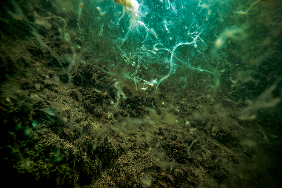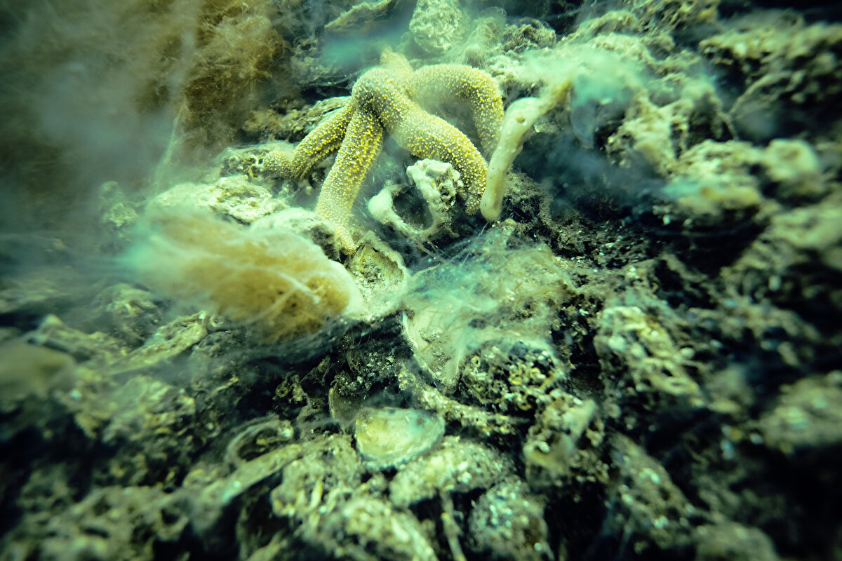 Dalış sırasında görüş mesafesinin sıfıra yakın olduğu ve bir ay önce gerçekleşen dalışa göre yoğunluğun kat kat fazla olduğu, su altındaki kaya oluşumları üzerinde de yoğun şekilde müsilajın örümcek ağı görünümüne sahip olduğu görüldü.