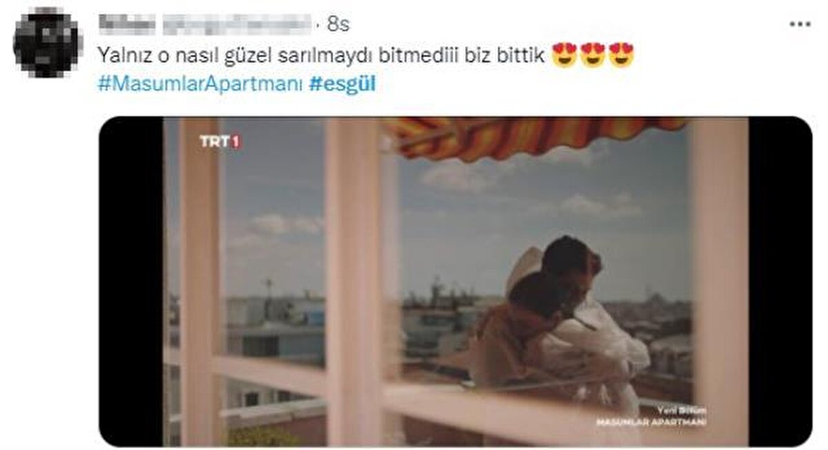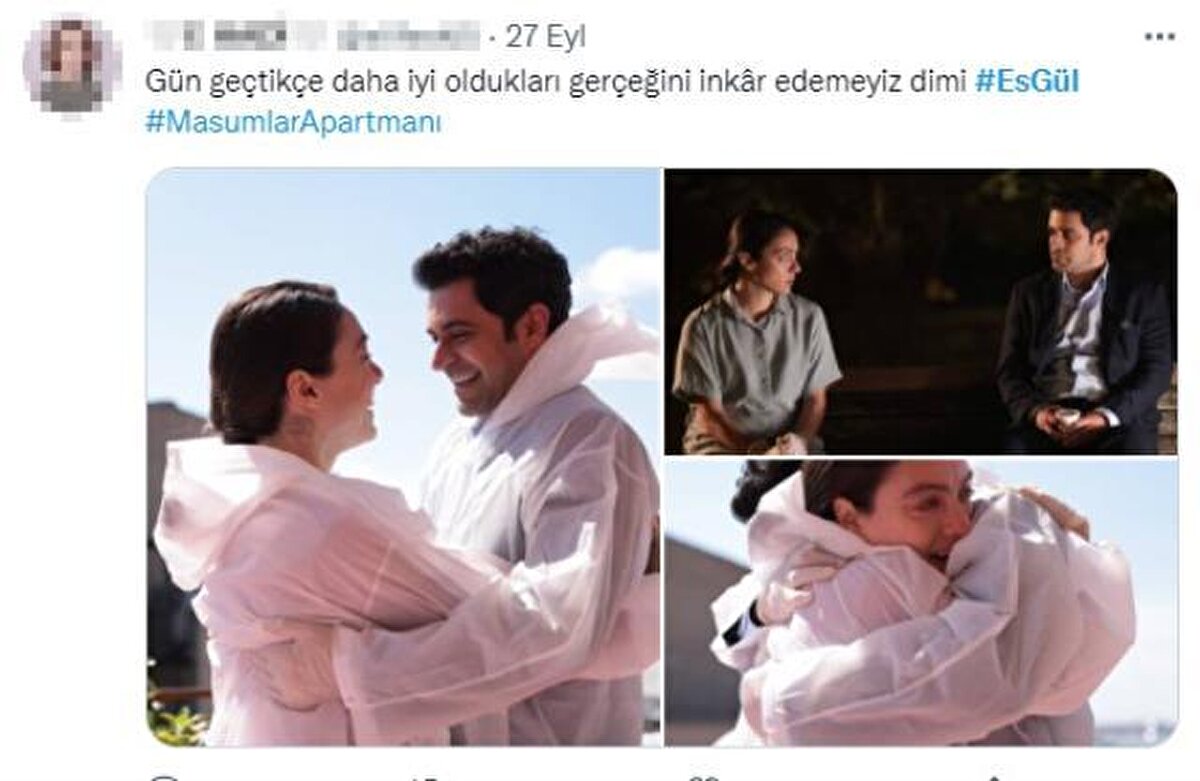 Dün akşam 40. bölümüyle ekrana gelen Masumlar Apartmanı'nda duygusal anlar yaşandı. Ayrılmak üzere olan Gülben ve Esat, apartmanın çatısında buluştu ve evlilik kararı aldı. Gülben'in "Eğer hala vazgeçmediysen benimle evlenir misin?" sözleriyle havaya uçan Esat, koruyucu kıyafetler giyerek Gülben'e sarıldı. İkilinin bu anları ise Twitter'da gündem oldu.