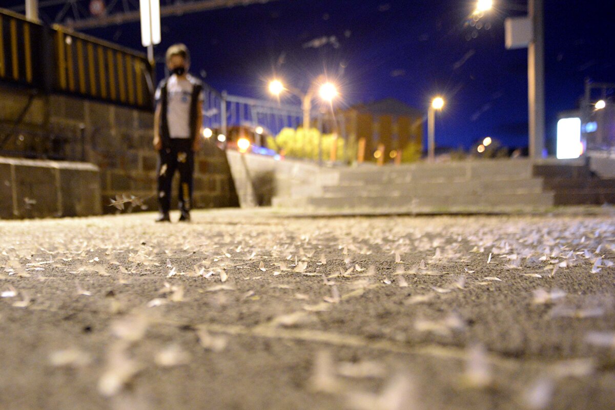 Kent merkezinde Kura Nehri kıyısında toplanan binlerce sinek, özellikle havanın kararmasıyla Ardahan Köprüsü ile Ardahan Kalesi'nin alt kısmındaki aydınlatma lambalarının etrafını sardı.