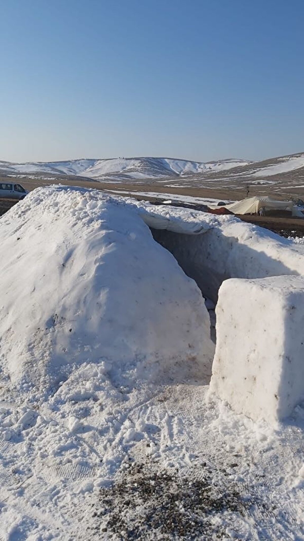 Yığılan karların içi tünel şeklinde oyularak ve sonrasında içerisi kubbe şeklinde oyularak insa edilen Kar mağarası, 4 kişi ile 4 saatte yapılır. Bu barınakları içerisinde zemine 20 cm genişliğinde 10 cm derinliğinde karbondioksit kanalı kazılarak biriken karbondioksitin dışarı çıkması sağlanır.