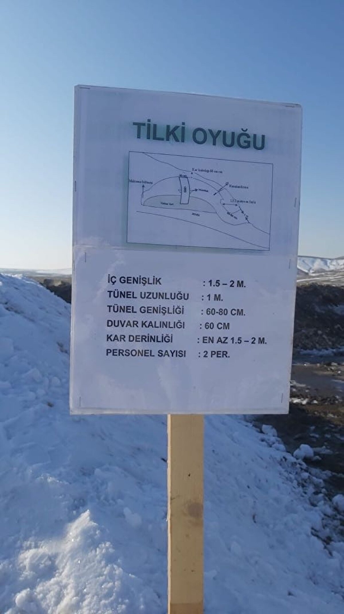 Kar çukuru 8 kişi ile 4 saatte inşa edilir. Yığılan karların zemine dogru kazılmasıyla ve yığılan karın daire şeklinde oyulması ile yapılır.