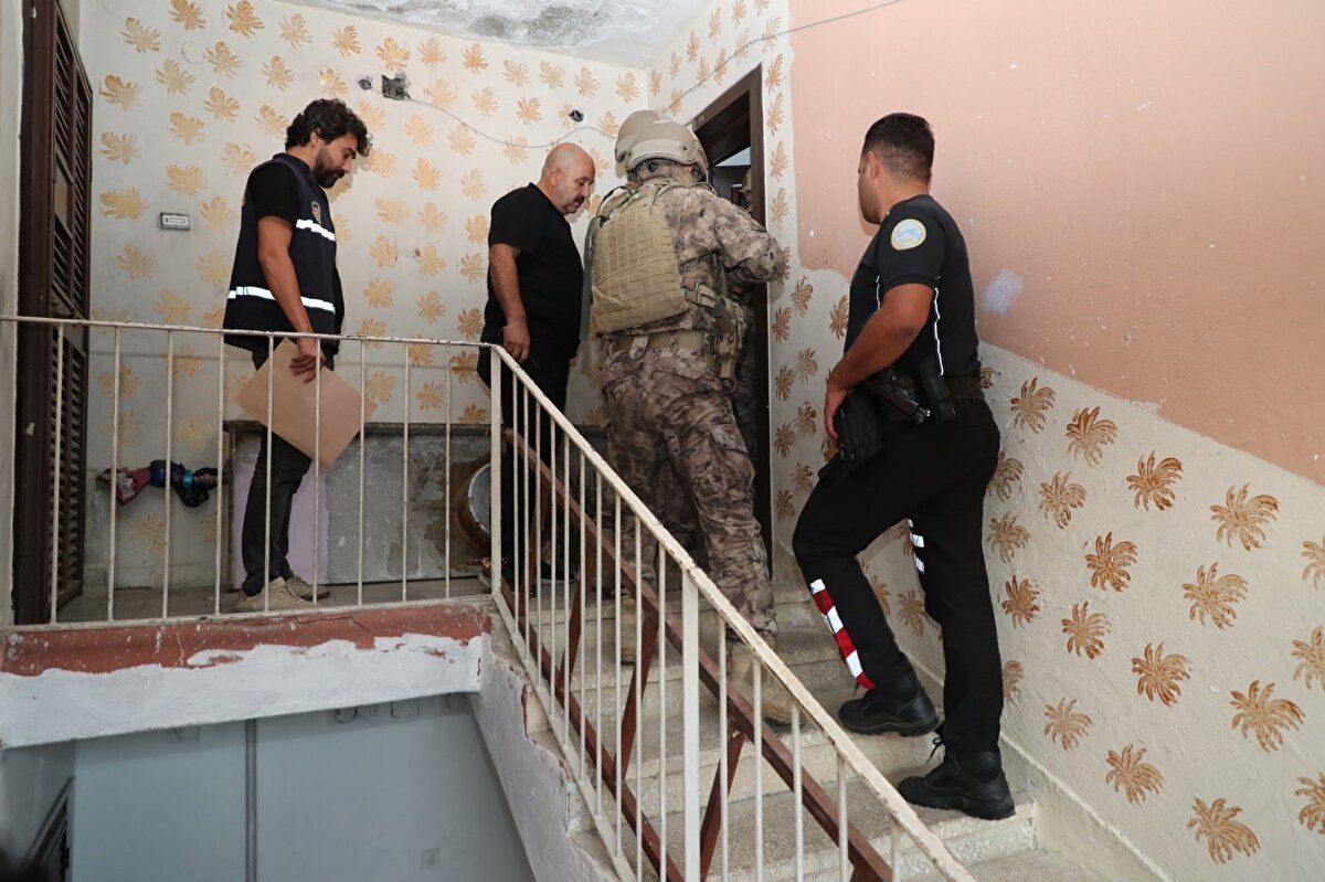 Mersin'de, 6 Şubat Kahramanmaraş merkezli depremlerde evlerini terk eden depremzedeleri kiralık ev vaadiyle kandırıp, kapora alarak dolandıran 13 şüphelinin yakalanması için şafak vakti operasyon düzenlendi. Özel harekat timlerinin de katıldığı, 150 polisin görev aldığı dronlu operasyonda hakkında yakalama kararı bulunan çok sayıda şüpheli gözaltına alındı.
