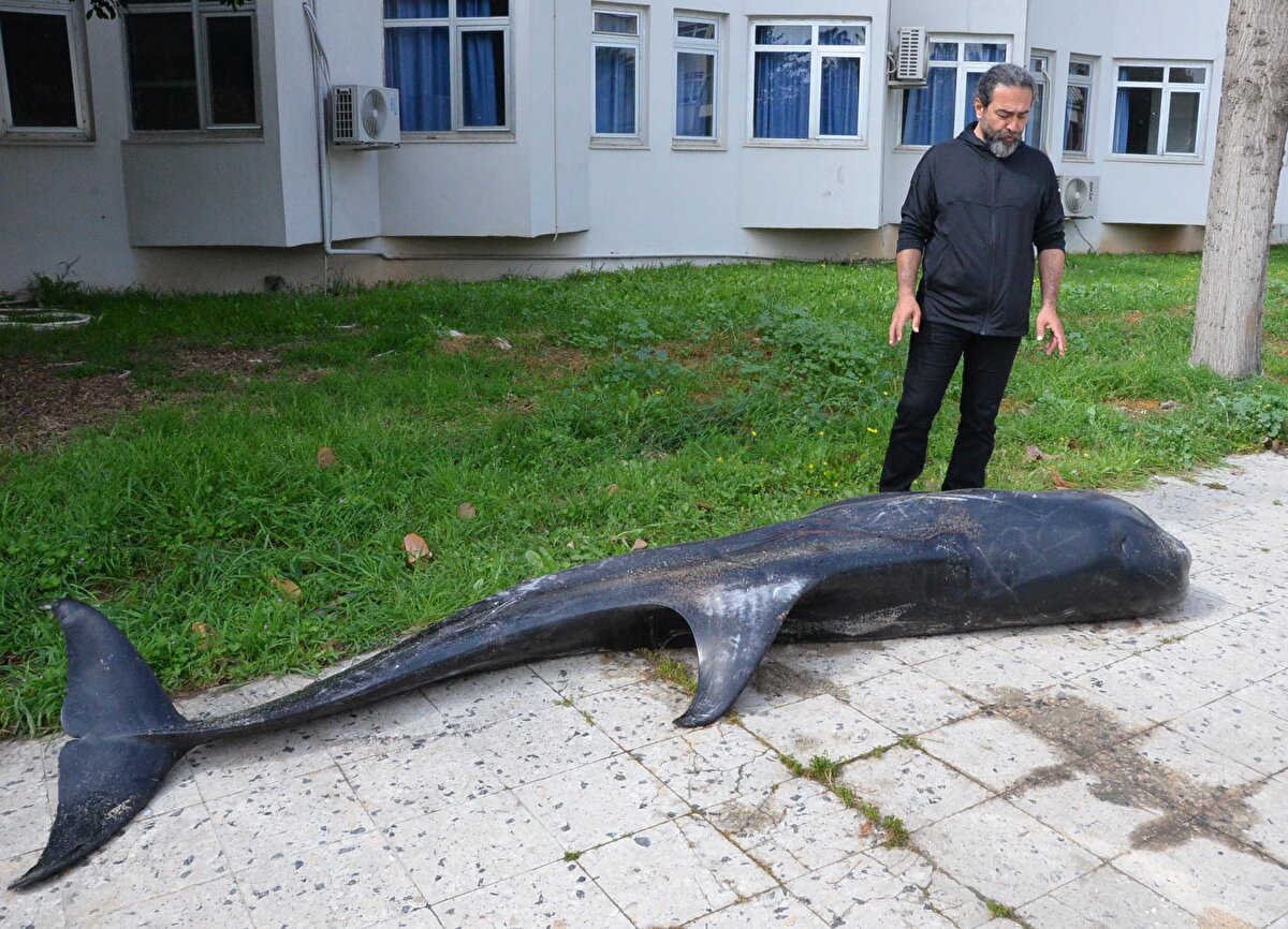 Mersin 'de açık denizlerde görülen, 3 metre 35 santim boyunda, 360 kilo ağırlığındaki boz yunus (Grampus griseus) ölüsü kıyıya vurdu. Yunusun ölüm nedenini tespit etmek için çalışma başlatıldı.