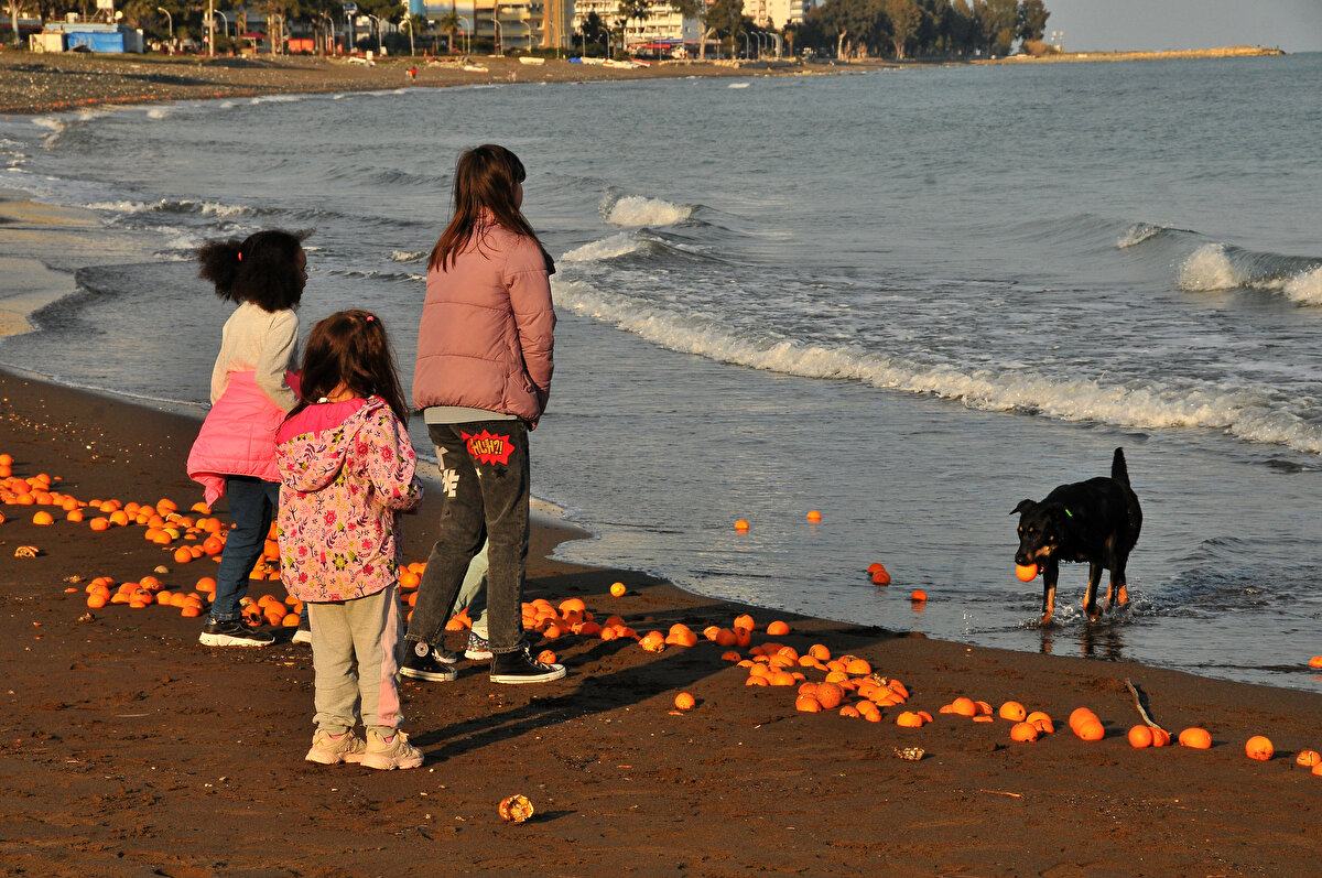 Mersin'de şaşkına çeviren görüntü: Sahile portakal vurdu