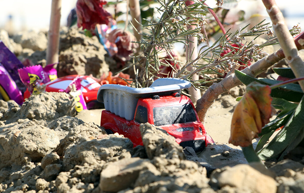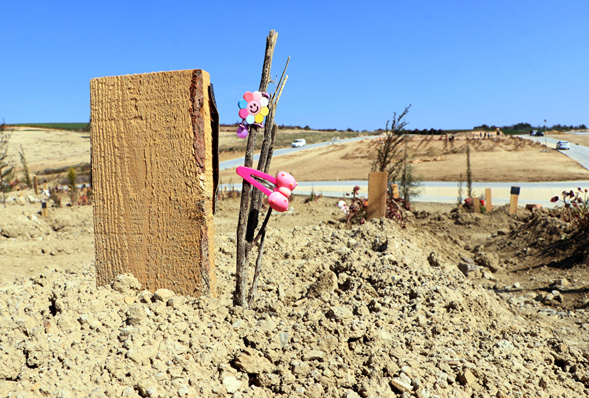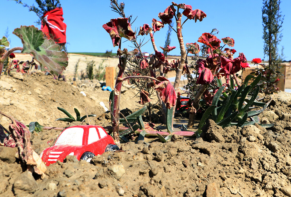Depremde ölen çocukların mezarlarının başına bırakılan oyuncak ve kıyafetler ise geride kalanların üzüntüsünü gözler önüne serdi.