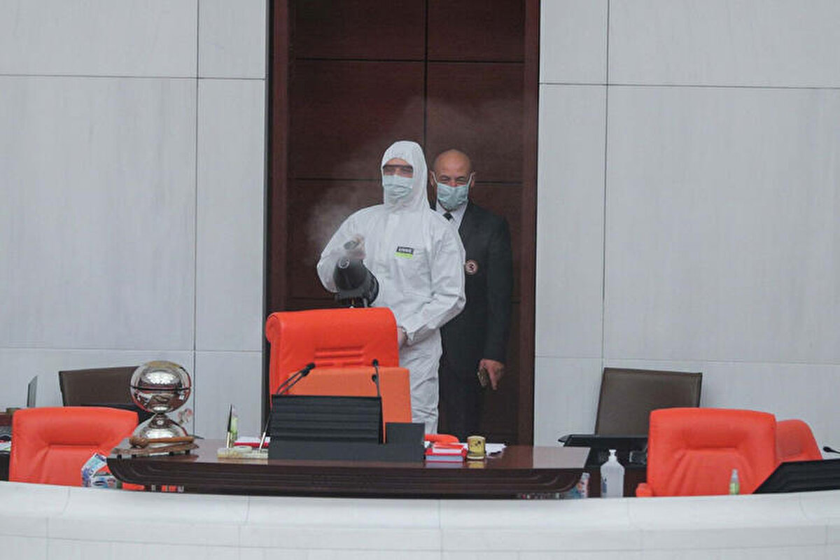 Oturumu yöneten Meclis Başkanvekili Celal Adan, “Girip çıkan bir arkadaşımızın daha pozitif çıktığını öğrendik” diye anons ettikten sonra Genel Kurula dezenfekte edilip havalandırılması için ara verdi.