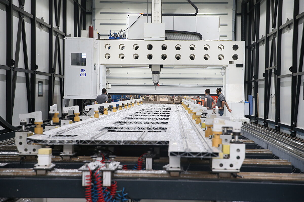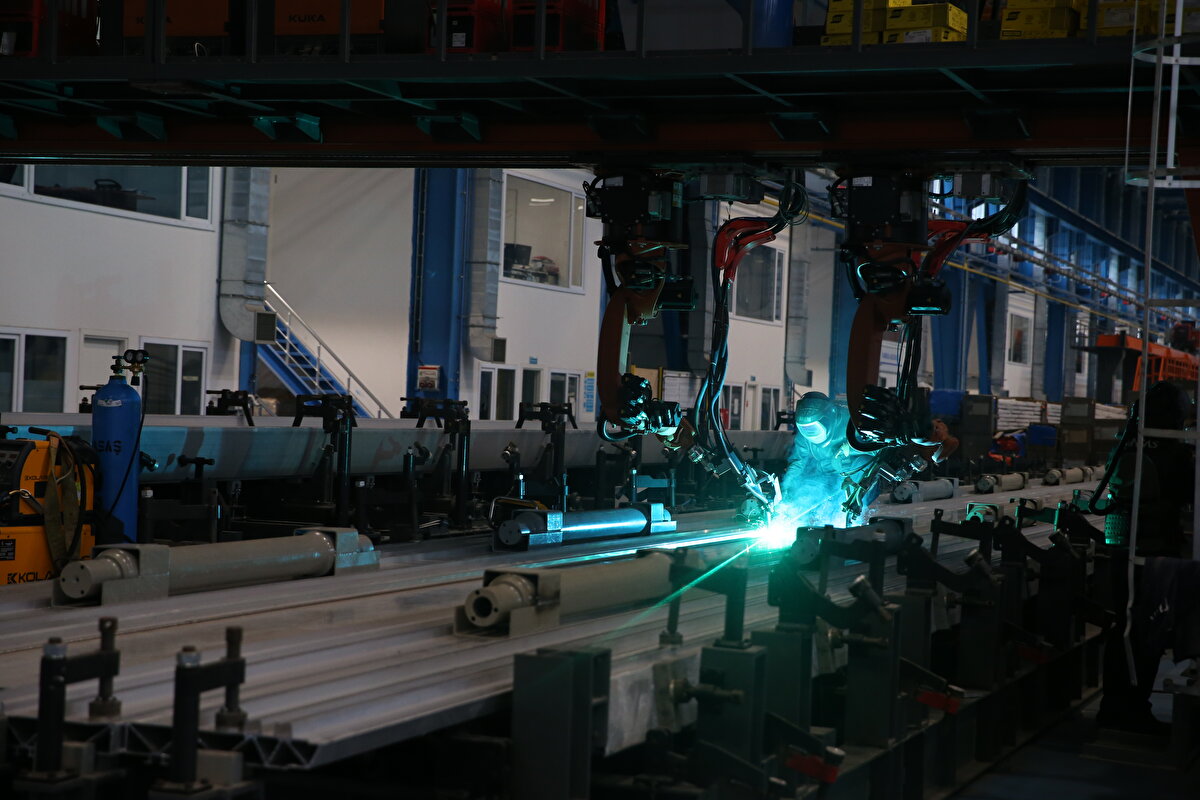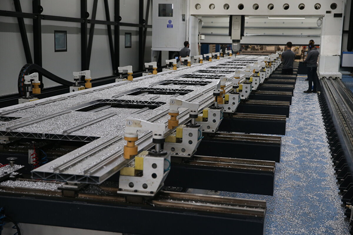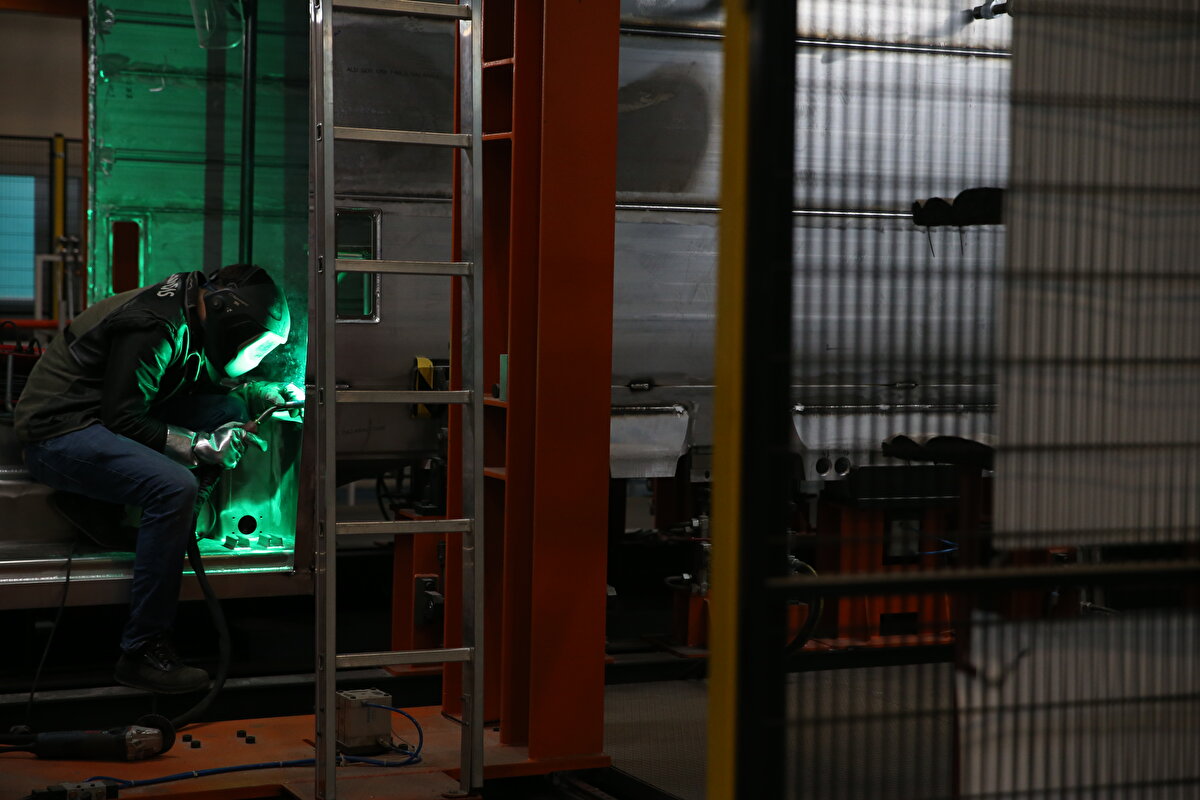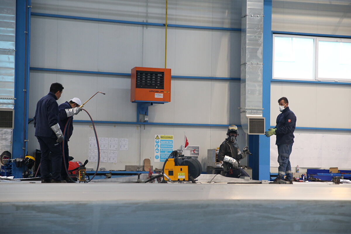 Daha sonra yapımı tamamlanan iki tren, üretim tesisinde bulunan rayların üzerinde yürütüldü.