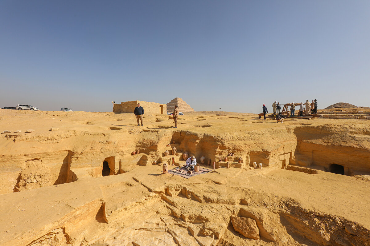 Mumya, başkent Kahire'nin güneyindeki Sakkara Nekropolü'nde, 15 metrelik bir sütunun altında keşfedildi. Bölgede üç mezar daha bulundu. Mezarlar arasında çok sayıda çanak çömlek de dahil, başka birçok eşyaya da rastlandı. Nekropolde ortaya çıkarılan mumyaların en büyüğünün, rahip, müfettiş ve aynı zamanda soyluların danışmanı olan Khnumdjedef adlı bir kişiye ait olduğu belirtiliyor. Bir diğer büyük mumya ise özel dini ritüelleri gerçekleştirmesi nedeniyle "gizli muhafız" unvanı verilen, üst düzey bir saray görevlisi olan Meri adlı bir kişiye ait.