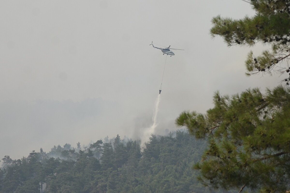 1400 metre yükseklikteki devam eden yangında söndürme çalışması 8 helikopter ve 2 uçakla sürüyor.