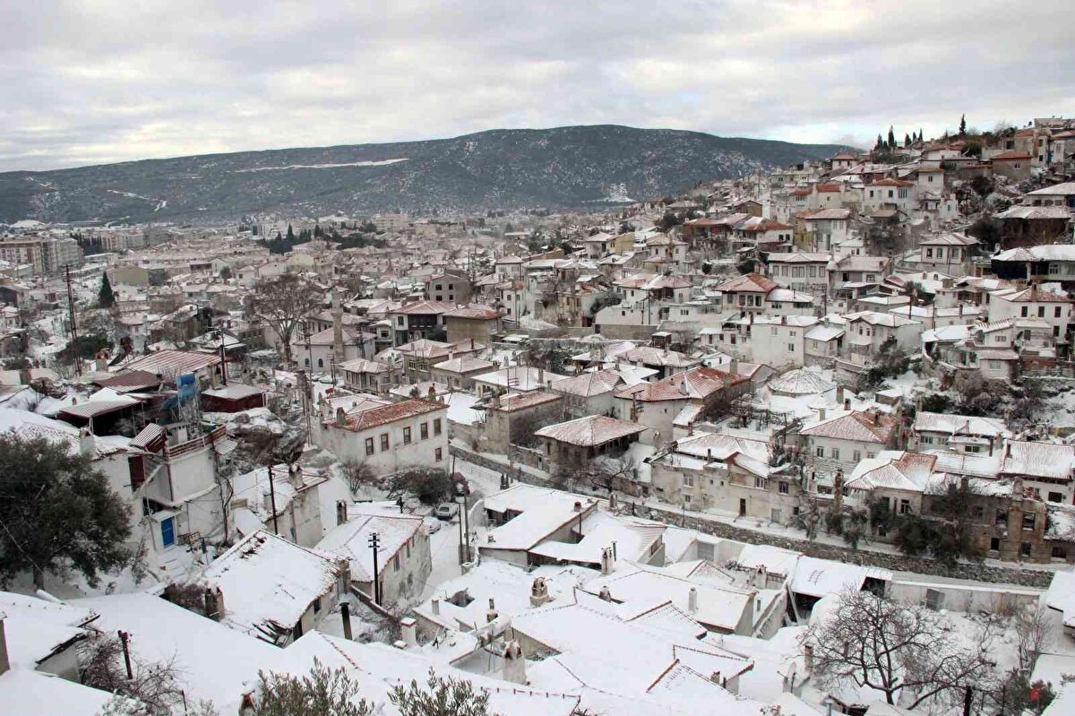 Muğla’da bulunan kiremit evler beyaz örtü ile kaplandı