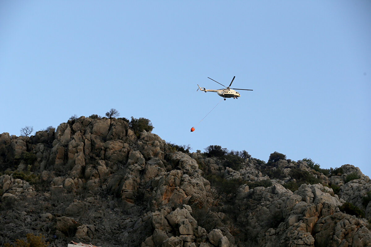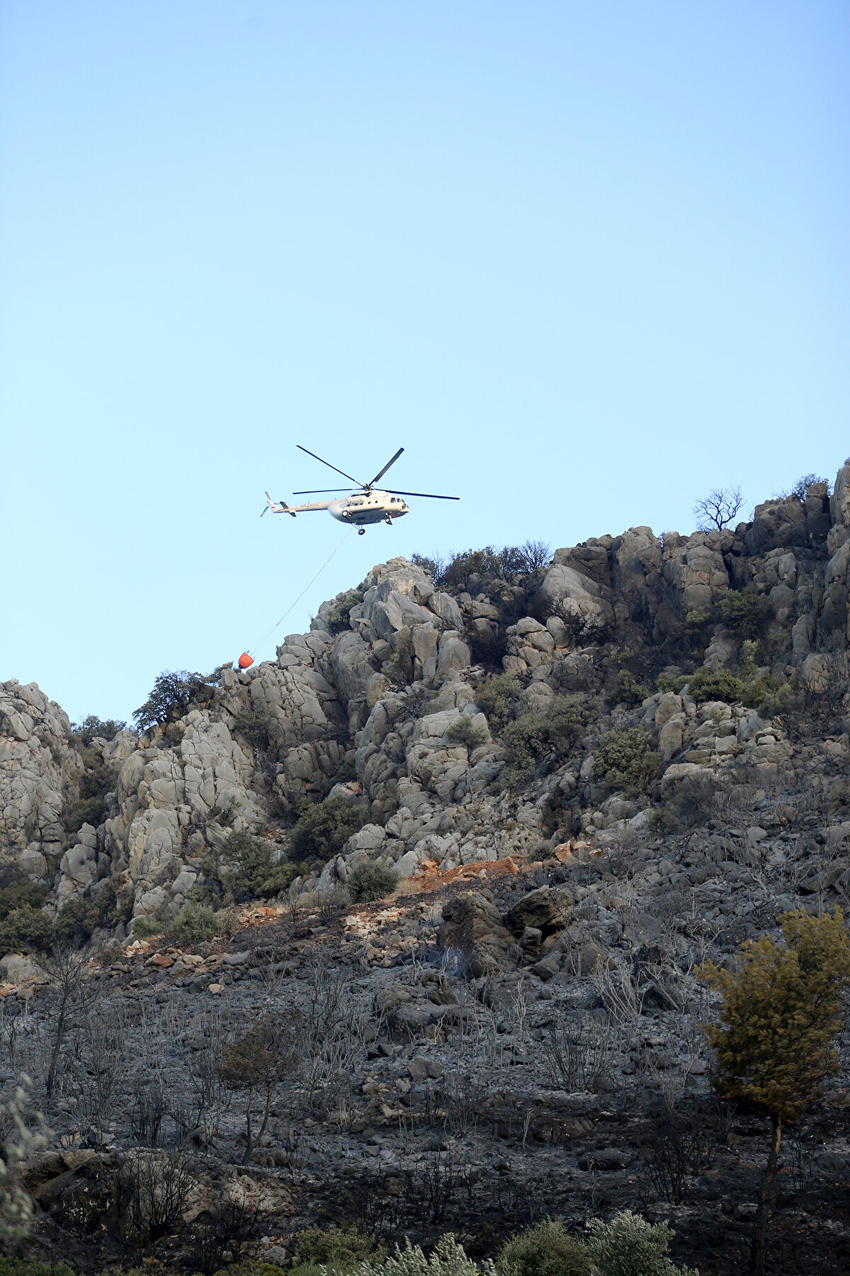 Sabahın ilk ışığıyla helikopterle müdahale edilen yangın, ormanlık alana sıçramadan kontrol altına alındı. Bölgede soğutma çalışmaları devam ediyor.