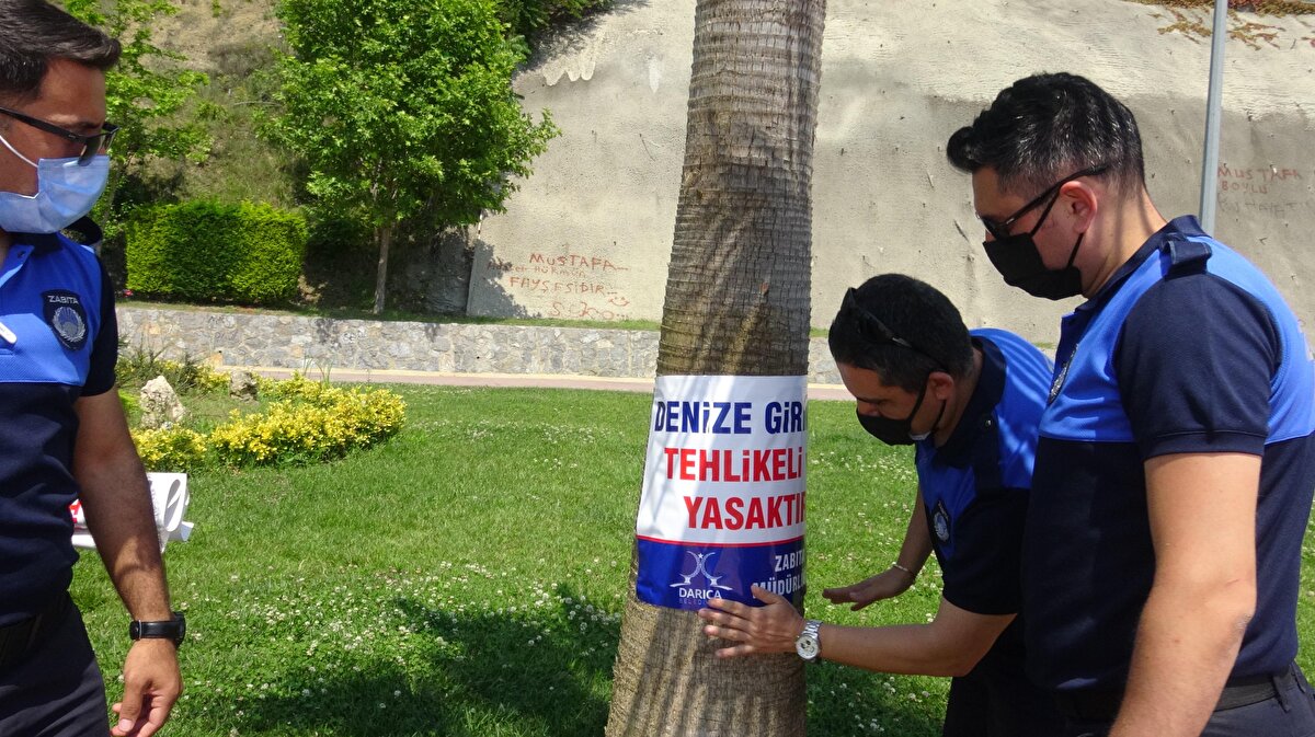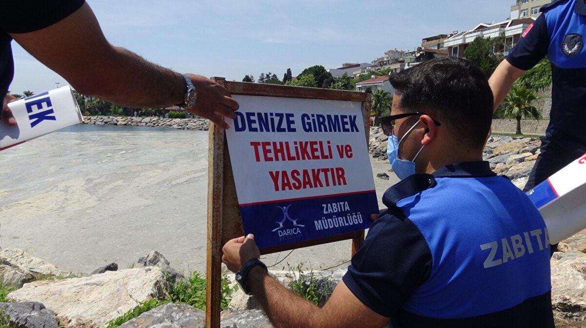 Zabıta Müdürlüğü ekipleri, Darıca sahiline ‘Denize girmek tehlikeli ve yasaktır’ yazılı tabelalar koydu. Zabıta ekipleri ayrıca araçlardan 'Lütfen dikkat, Darıca sahilde denize yasaktır' diye anonslar yaptı. Sahil şeridi boyunca gezen zabıtalar, sahildekileri denize girilmemesi konusunda uyardı.