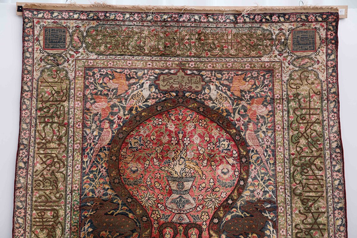 Halıyı satın aldıktan sonra ilk işi elle yıkamak oldu. Yıkadıktan sonra halının değeri daha çok arttı çünkü üzerindeki figür ve desenler daha çok belirginleşti. Üzerinde 4 ayet bulunan halı Zareh Penyamin tarafından yapıldı.