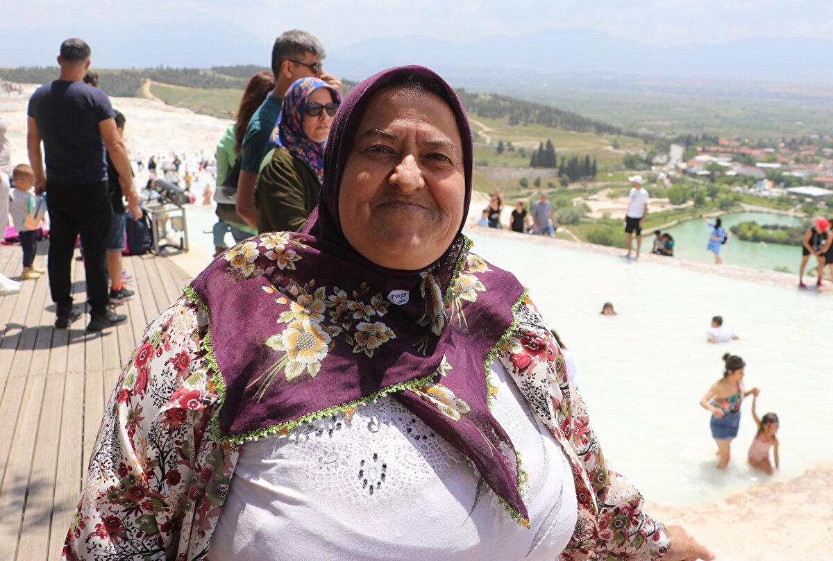 Denizli'de yaşamasına rağmen Pamukkale'ye ilk kez geldiğini belirten Satı Sevim, "Pamukkale harika bir yer. Bu milletin, bu güzellikleri görmesi gerek.