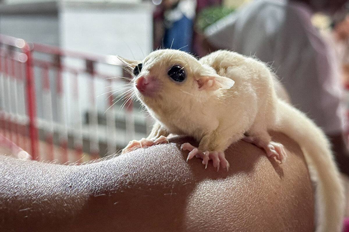 Bangkok'un kalabalık sokaklarında turistlerin ilgisine sunulan hayvanlardan biri de minik keseli "Sugar Glider"ler.