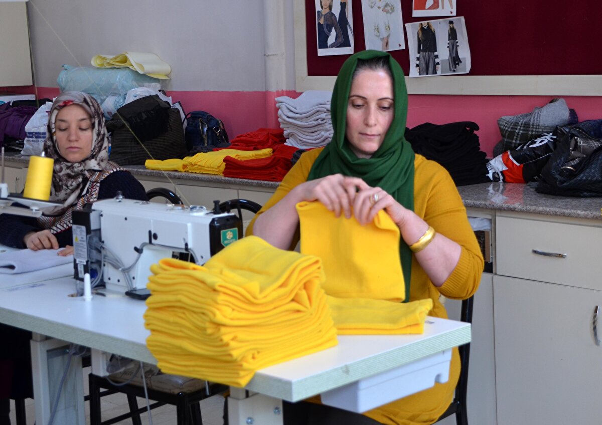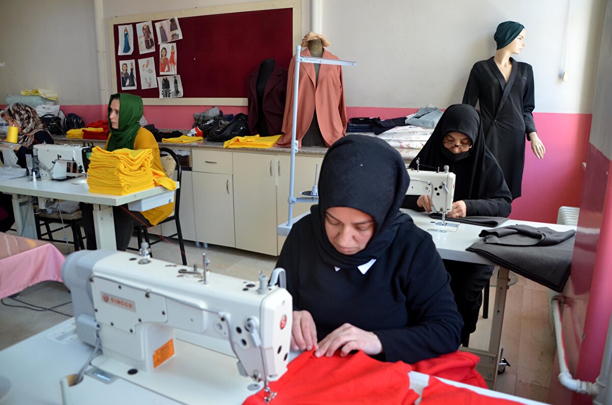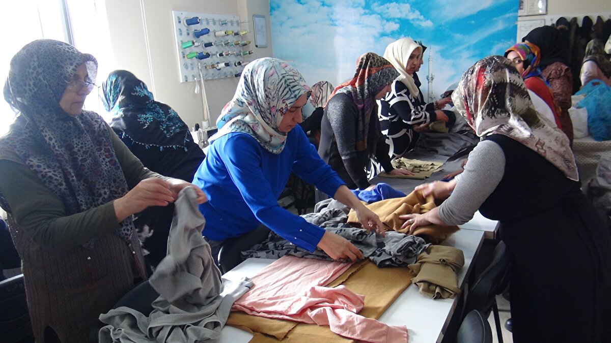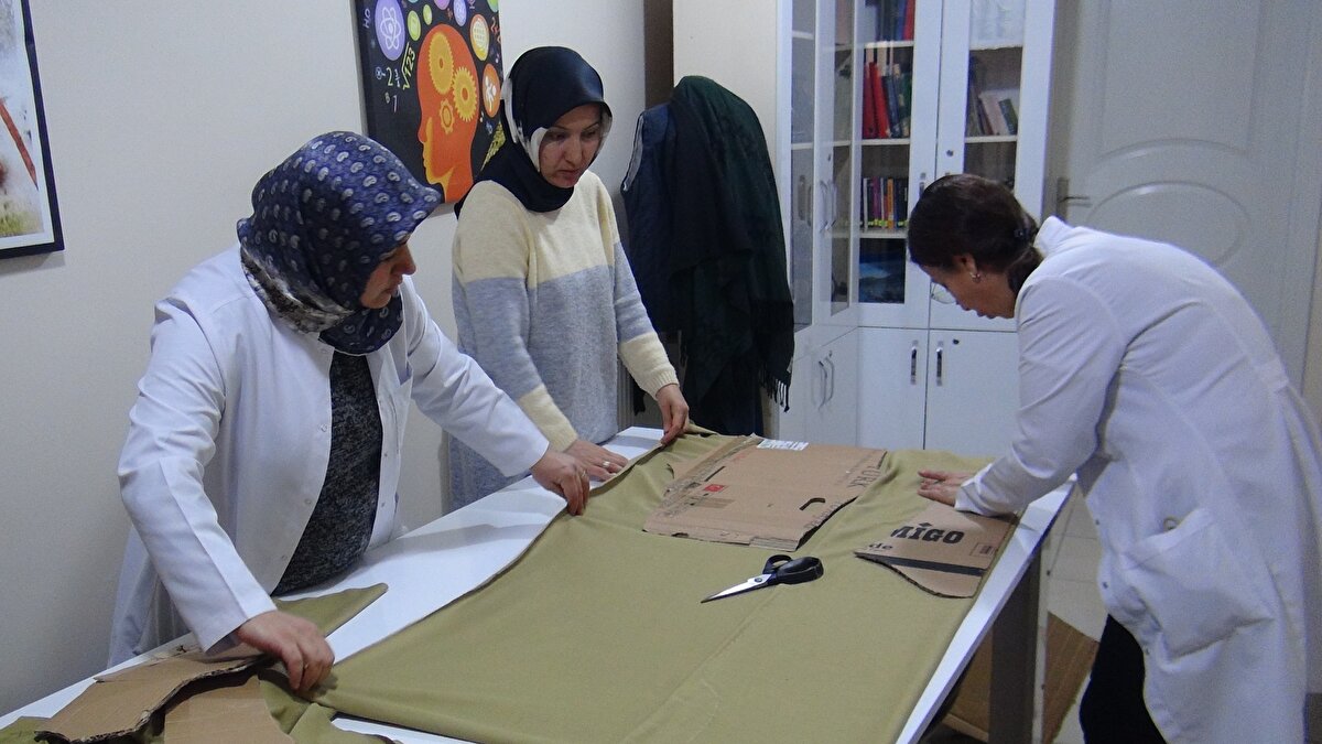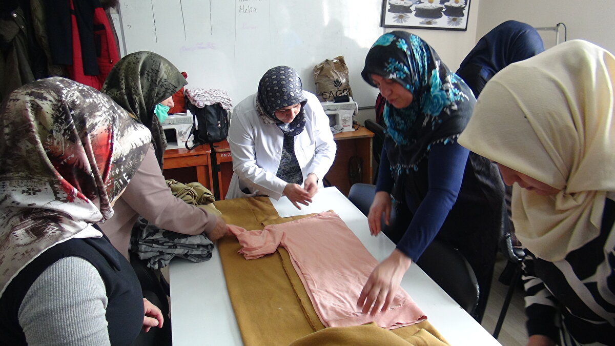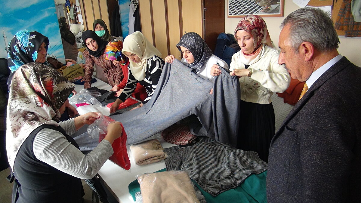 Muş'ta da Halk Eğitim Merkezi bünyesinde giyim üretim teknolojileri kursuna katılan kursiyerler, depremzedelerin kışlık giysi ihtiyacı için kolları sıvadı.