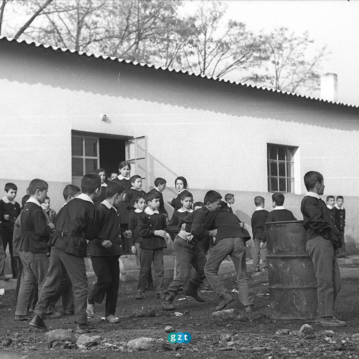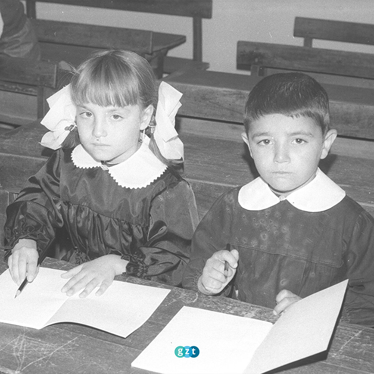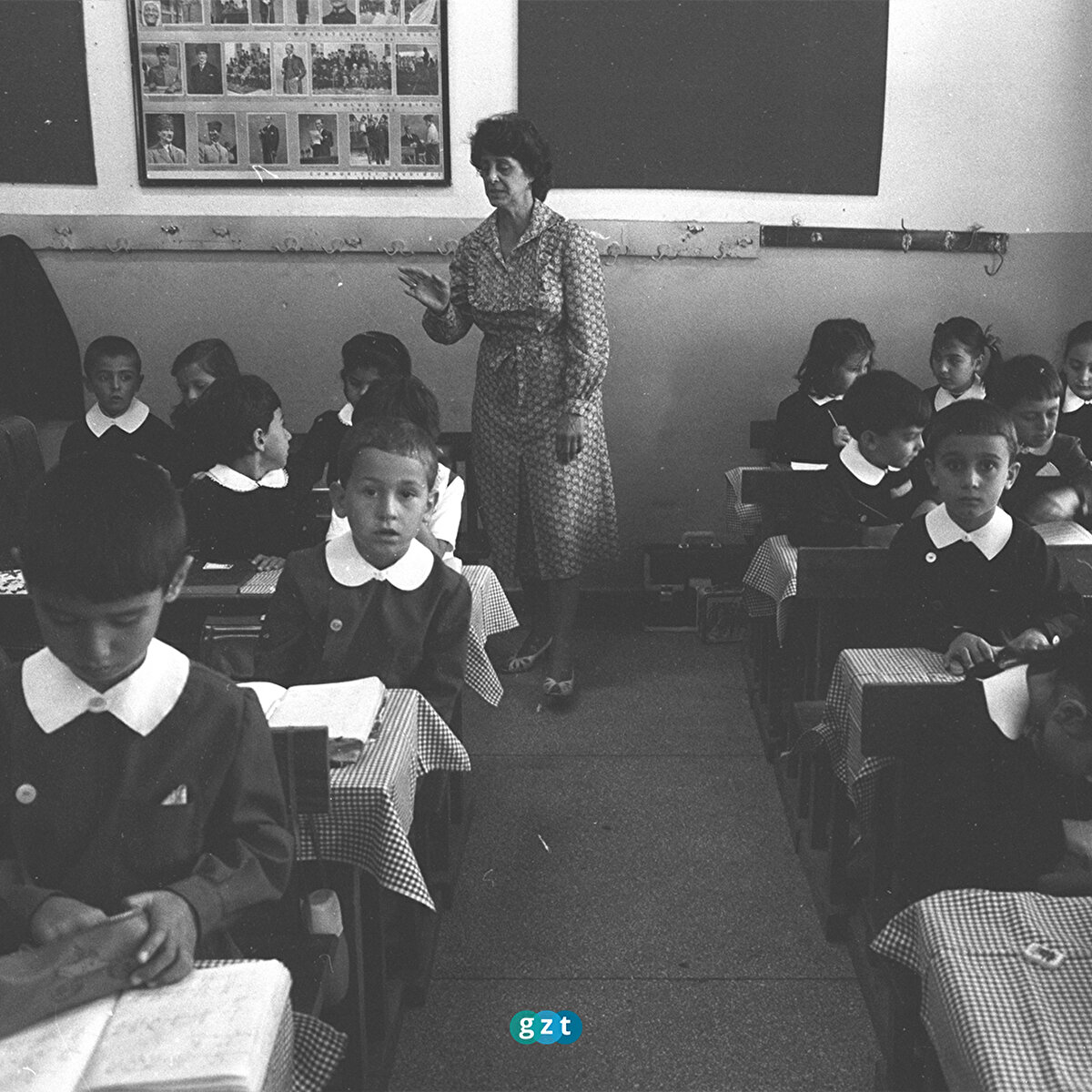 AA Arşivi'nden derlenen siyah beyaz fotoğraflarda, geçmiş yıllardaki derslikler, siyah önlüklü öğrenciler ve öğretmenlerinin görüntüleri yer alıyor. 15 Eylül 1975'te okula başlayan çocuklar ve öğretmenler